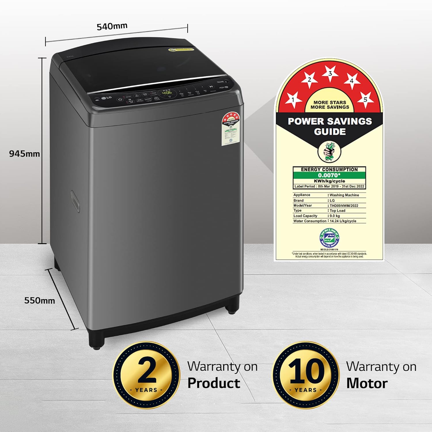 LG 9 Kg 5 Star Inverter Wi-Fi Fully-Automatic Top Loading Washing Machine Appliance (THD09NWM, Middle Black, AIDD Technology & TurboWash)
