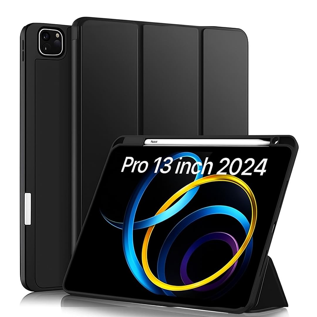 LIRAMARK Smart Case for Apple iPad Pro 13 inch (M4)(2024) [Auto Sleep/Wake Cover] [Pencil Holder] [Soft Flexible Case Cover] Recoil Series – Black