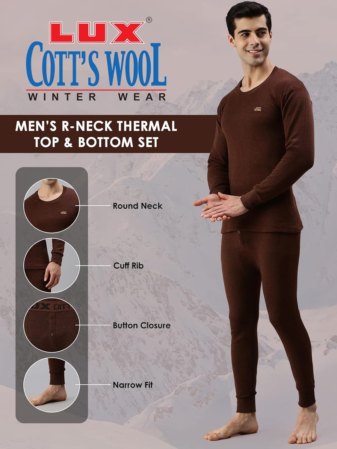 Lux Cottswool Mens Round Neck Full Sleeves Thermal Set