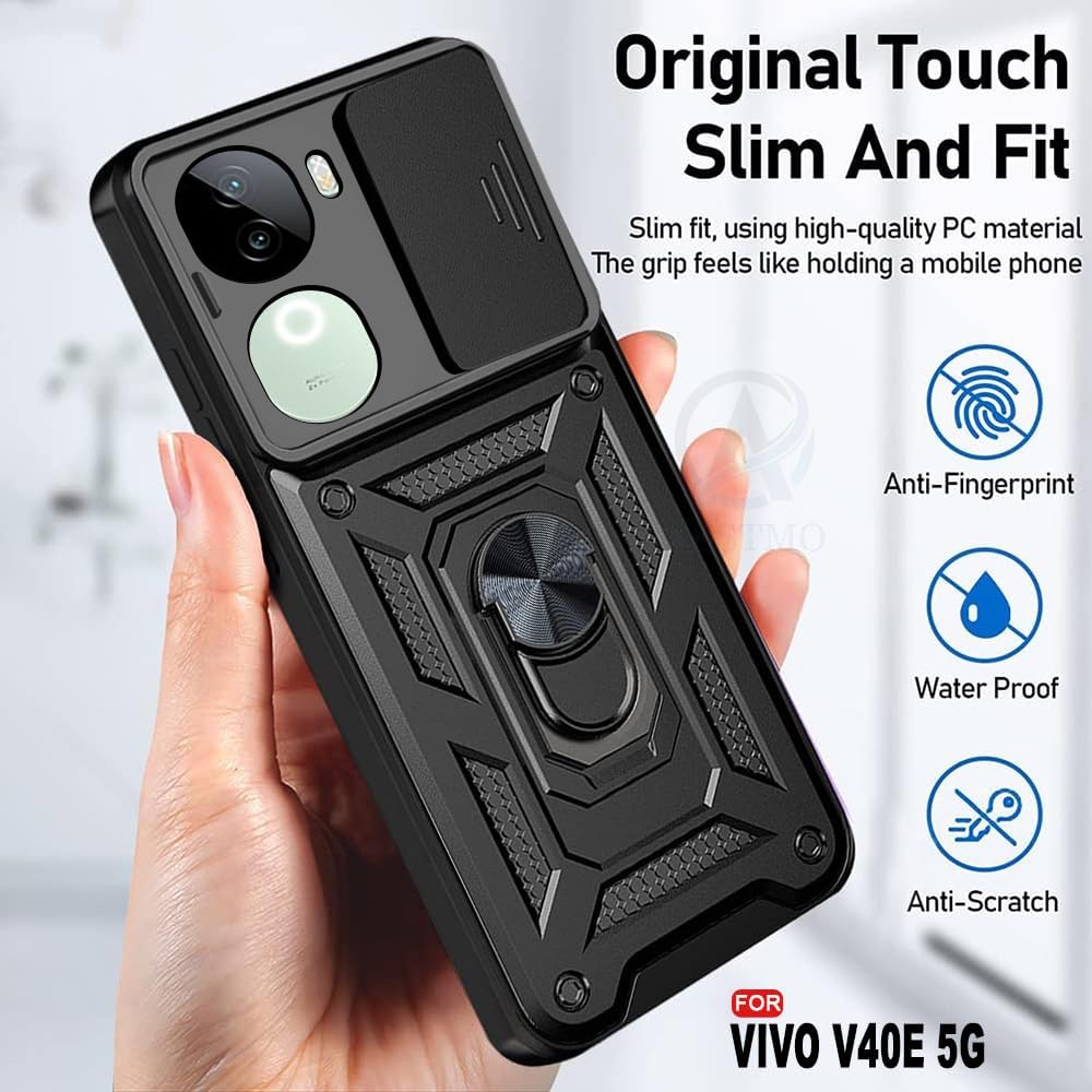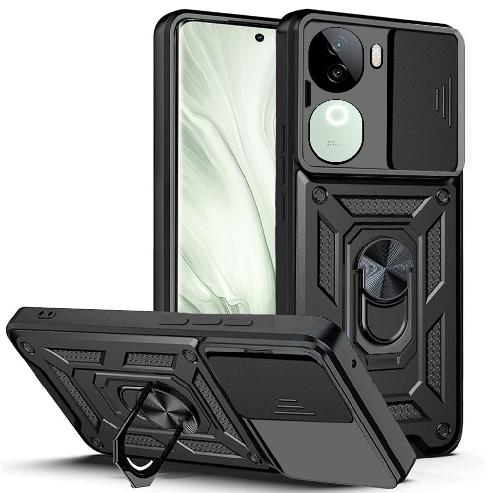 Luxe® Back Cover for Vivo V40e 5G / iQOO Z9s 5G | D10 Tough Armor Case | Sliding Camera Shield | 360° Protection | Kickstand Ring Holder | Military-Grade Shockproof Bumper Case