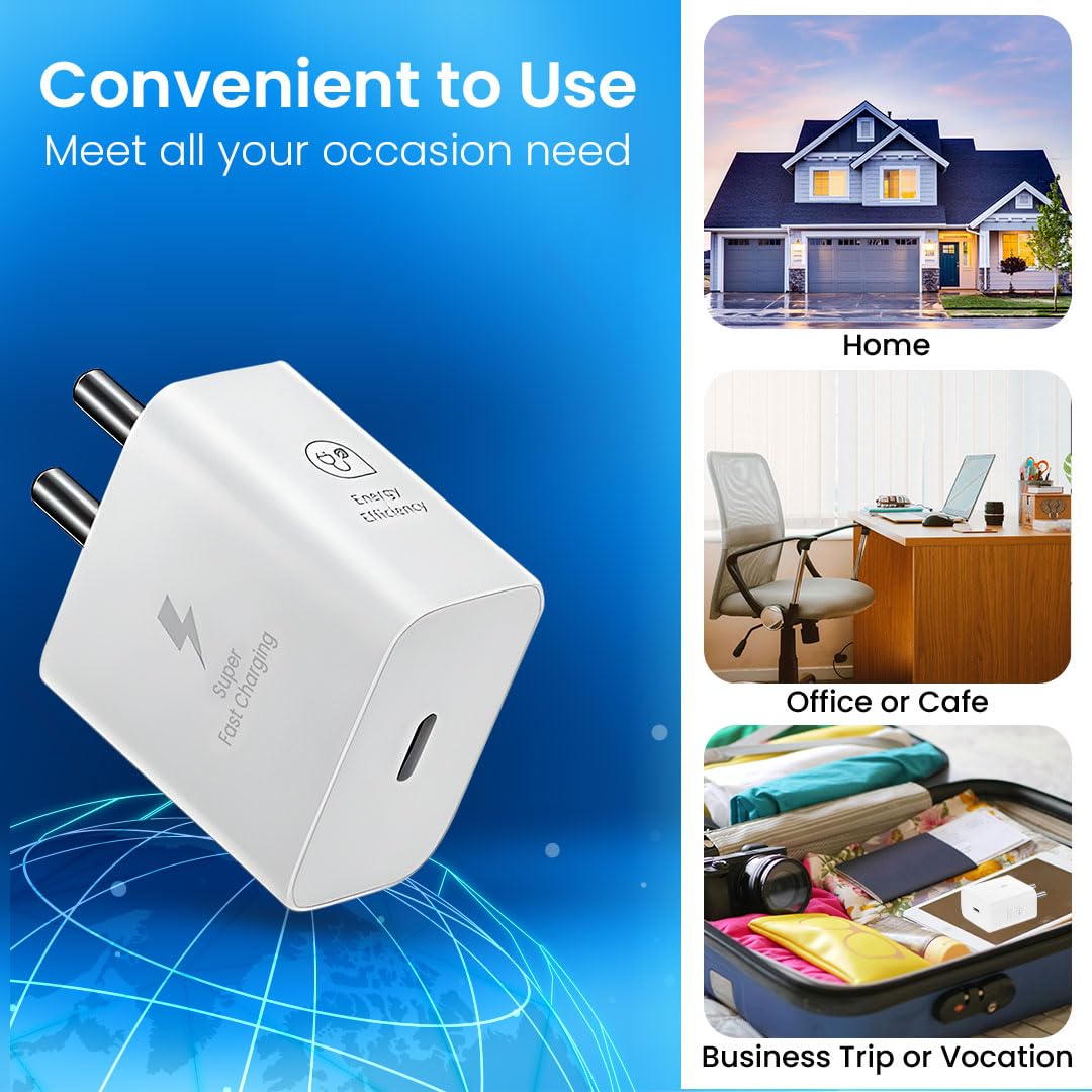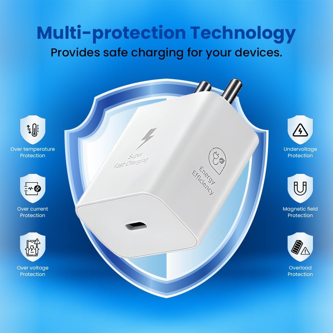 MAK 25W Type C Charger Super Fast Adapter Compatible with Samsung Galaxy M05/M15/F15/A15/M35/A35/A55/M55| M34/M14/F34/F14/F54/A14/S24/S23/S21 Fe/S23 Fe,White