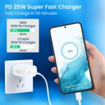 Smart 25w charger type c : With over current and over-voltage protection, this travel adapter is smarter than the average charger. It keeps your devices safe from damage and ensures they’re charging efficiently