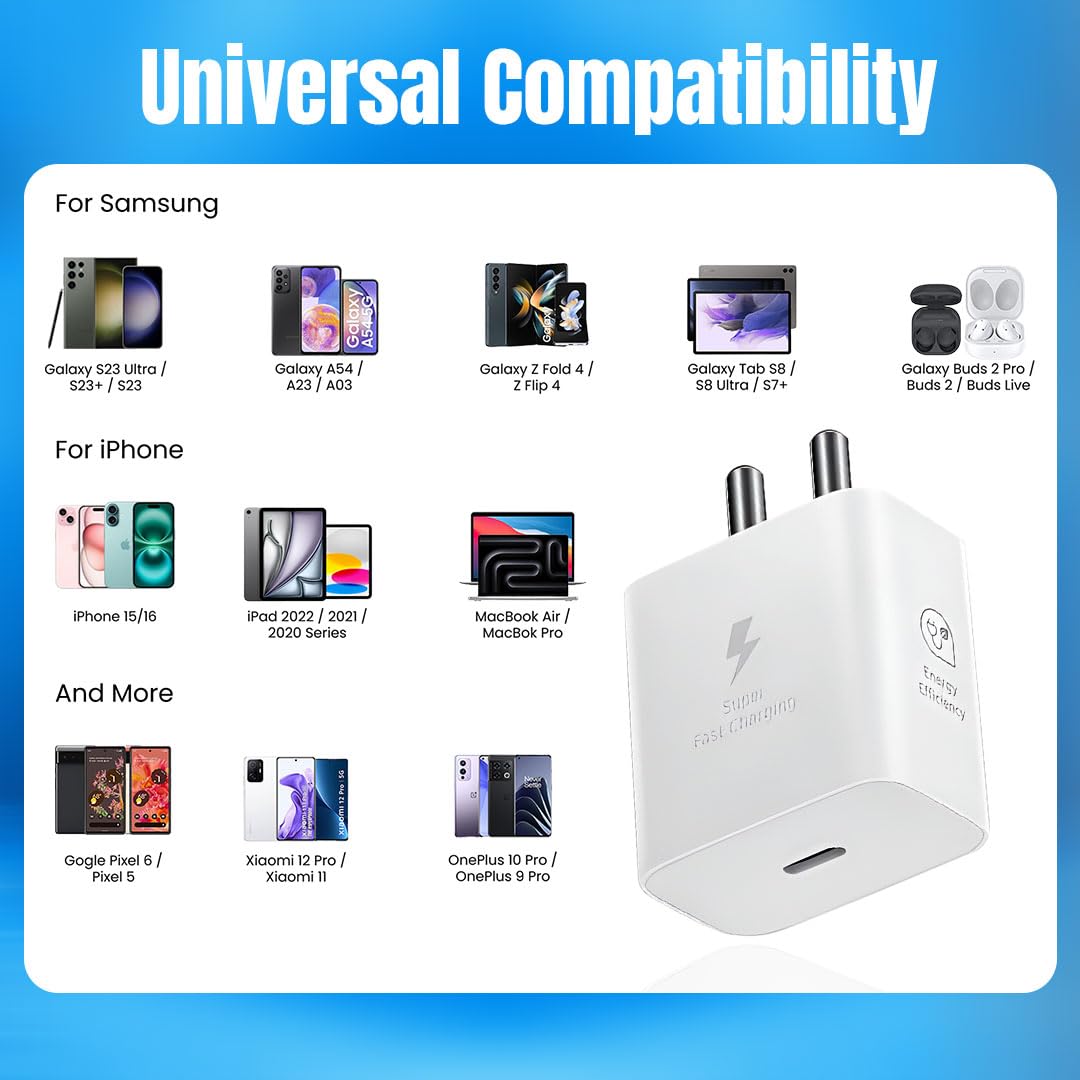 Ultimate Power duo: Compatible with Samsung Galaxy A | M | Z | F | S Series 25w charger are the ultimate power duo. Together, they’ll keep your device charged up and ready to take on anything the world throws your way