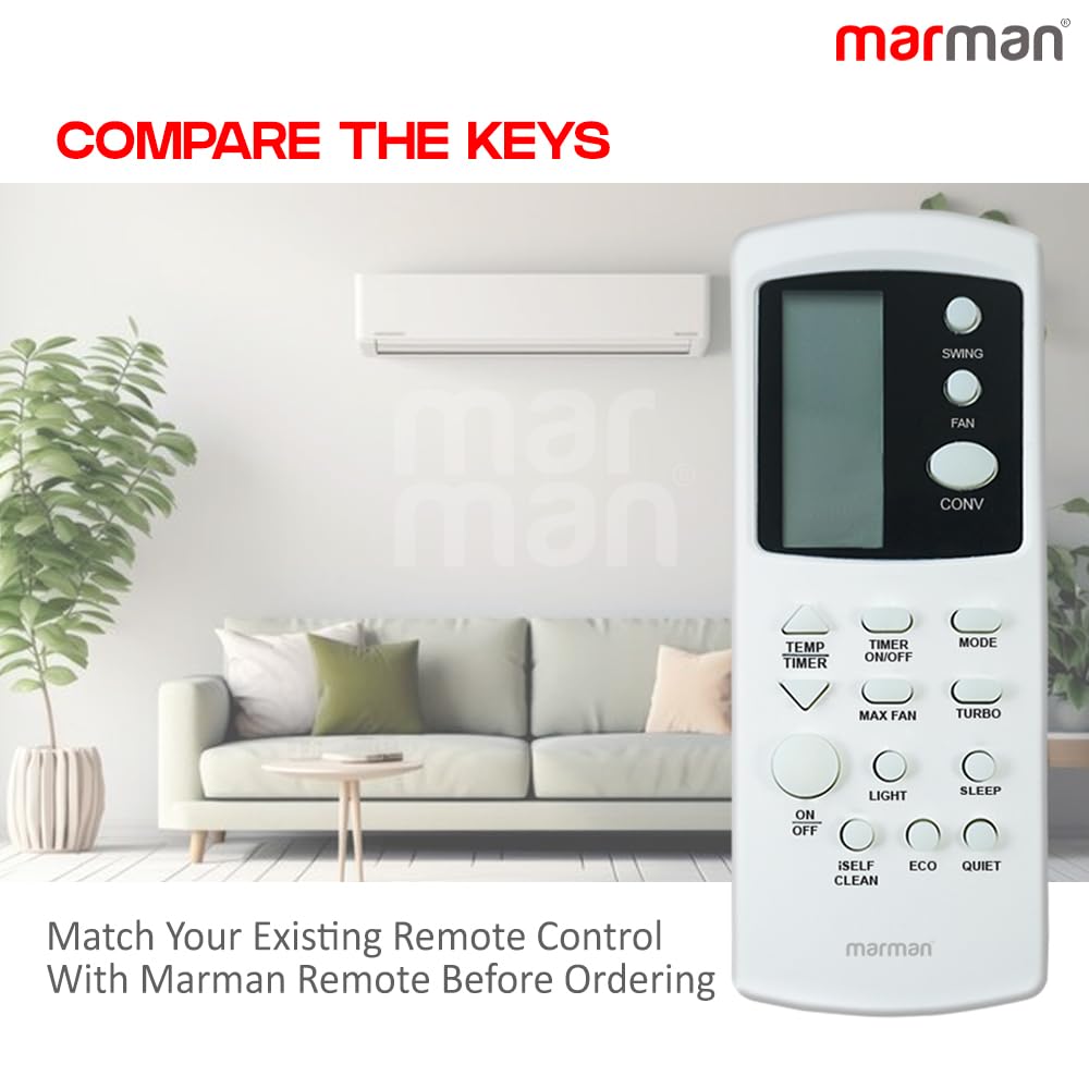 marman® Compatible with Blue Star AC Remote Control Model 310 Suitable for 1 | 1.5 | 2 Ton Split and Window Air Conditioner – Match Remote Key by Key with Existing Remote Control