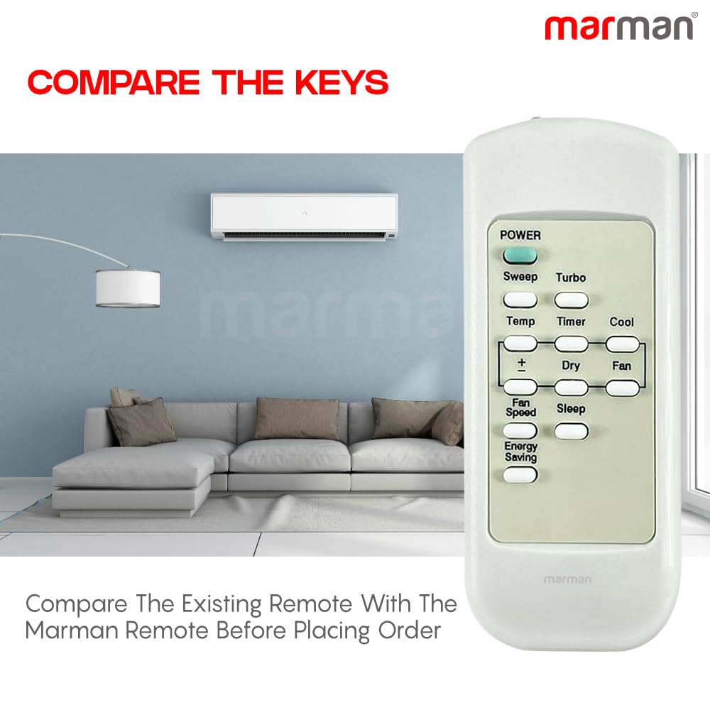 marman® Compatible with Carrier Ac Remote Original Model 100A Suitable for 1 | 1.5 | 2 | Ton Split and Window Air Conditioner – Match Exactly with Old Model 100A Remote Controller