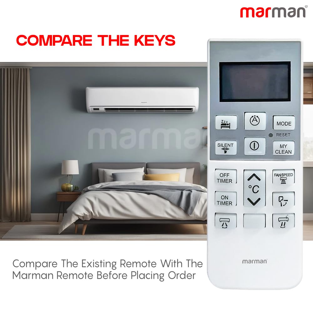 marman® Compatible with Hitachi AC Remote Original Suitable for 1 | 1.5 | 2 Ton Split or Window Air Conditioner – Match Exactly with Old Model 168B with Zzz Key Remote Controller