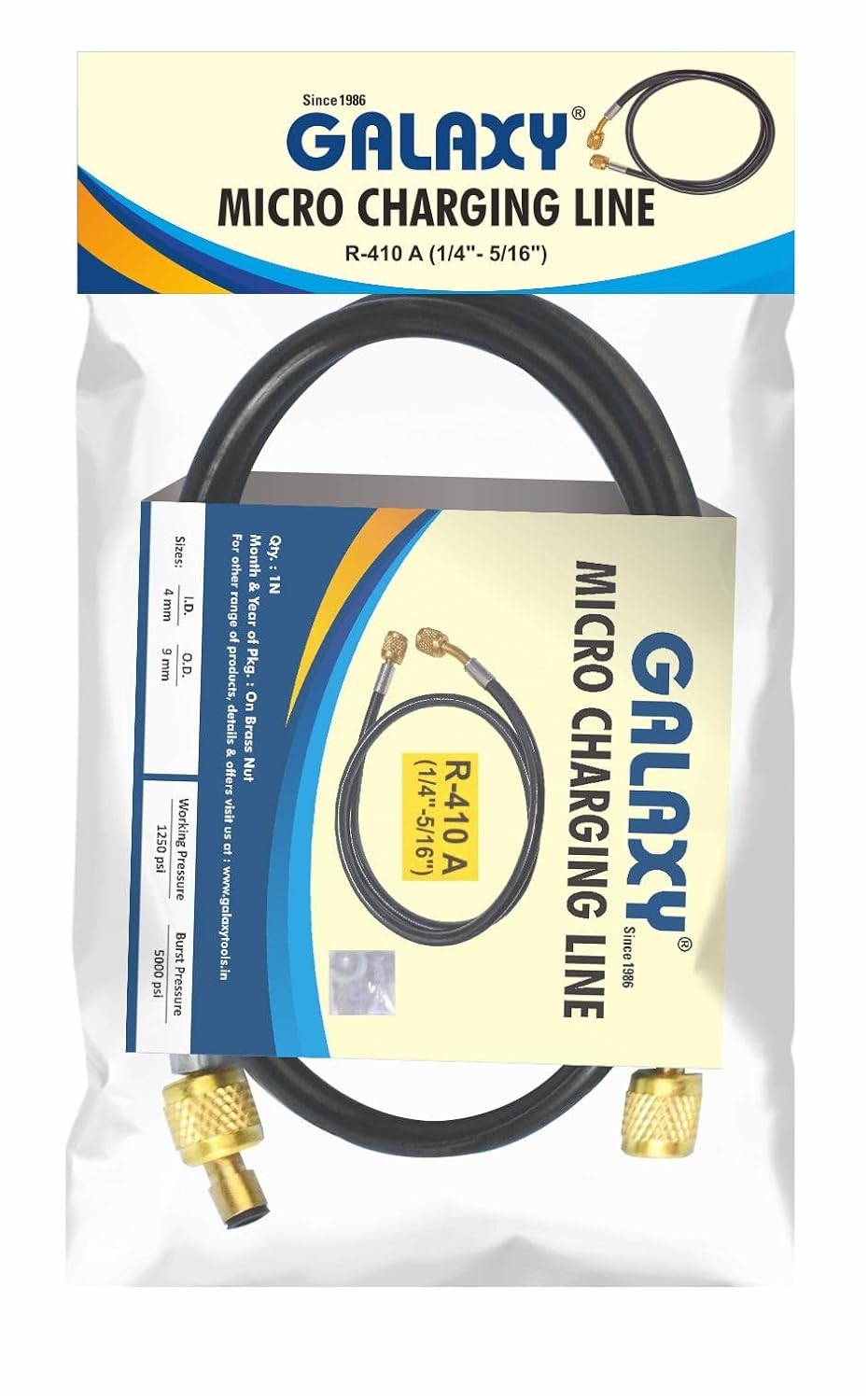 Galaxy Micro Charging Line is suitable for filling High Pressure R410A, R32 gas in Car A/Cs, Refrigerators.. Made with best quality of material with International manufacturing standards.