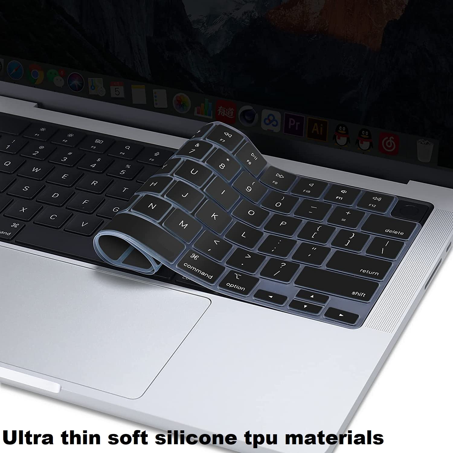 Compatible with: The keyboard cover is designed ONLY to be compatible with MacBook Air 15 inch M4 M3 M2 chip Release 2025 2024 2023 – Model A3241 A3114 A2941, compatible with MacBook Air 13.6 inch M4 M3 M2 chip Release 2025 – 2022 — Model A3240 A3113 A2681, compatible with MacBook Pro 14 inch M4 M3 M2 M1 Pro/Max chip Release 2024 – 2021 — Model A3112 A3185 A3401 A2918 A2992 A2779 A2442 & compatible with MacBook Pro 16 inch M4 M3 M2 M1 Pro/Max chip Release 2024 – 2021 — Model A3403 A3186 A2991 A2780 A2485