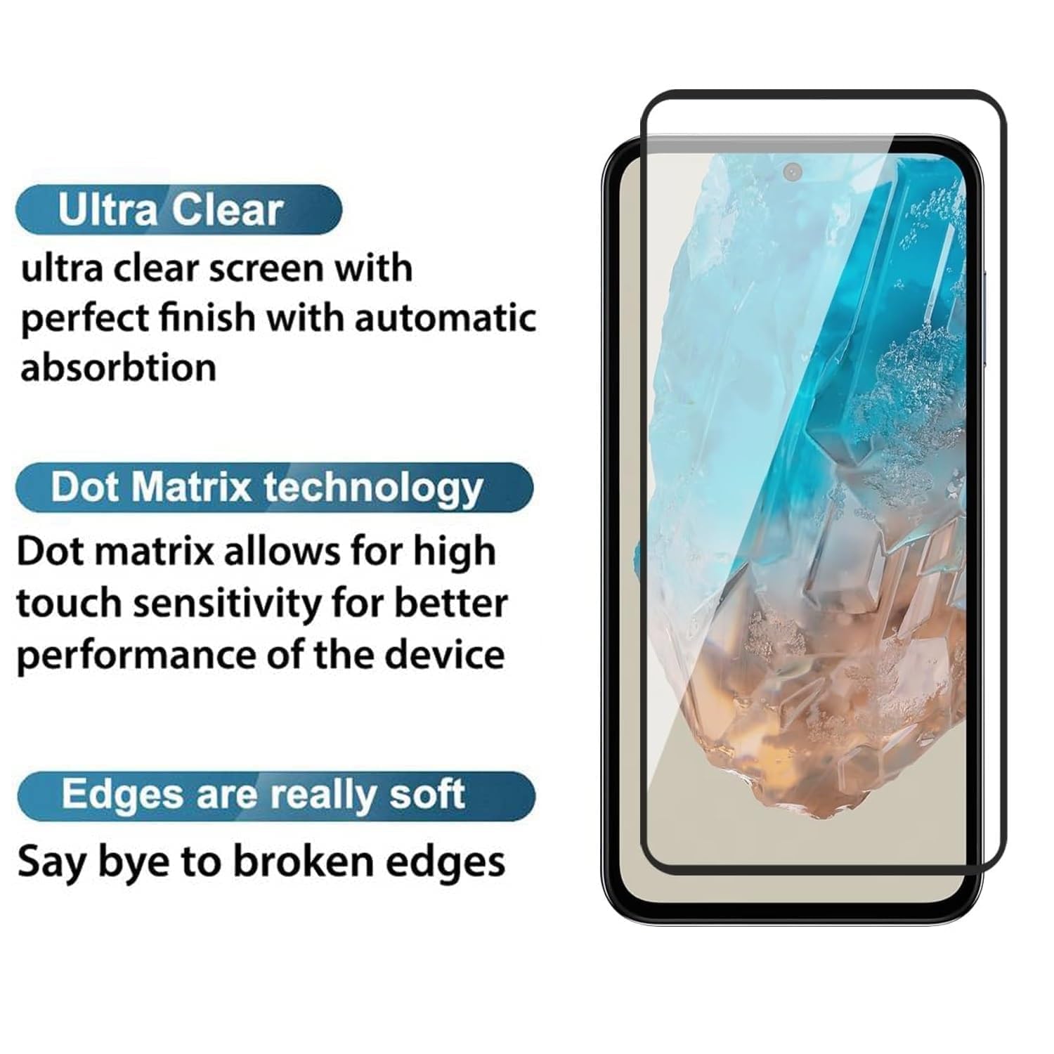 Protect your precious smartphone with this HD+ edge-to-edge full coverage tempered glass screen protector. Made from ultra-thin, 0.33 mm toughened glass, it delivers exceptional 9H hardness to safeguard against scratches, drops, and daily wear. With precise edge-to-edge coverage, it fits your phone perfectly without affecting touch sensitivity or display clarity. An advanced oleophobic coating repels fingerprints, oil, and smudges—keeping your screen clean and responsive. The bubble-free, easy installation kit makes application simple and quick. Compatible with most phone cases, the tempered glass is laser-cut to accommodate front cameras and sensors while maintaining an ultra-clear, smooth-touch experience. Whether you’re at home, commuting, or working outdoors, this screen protector keeps your display protected without compromising on visibility or usability. Ideal for users looking for premium mobile screen protection that lasts.