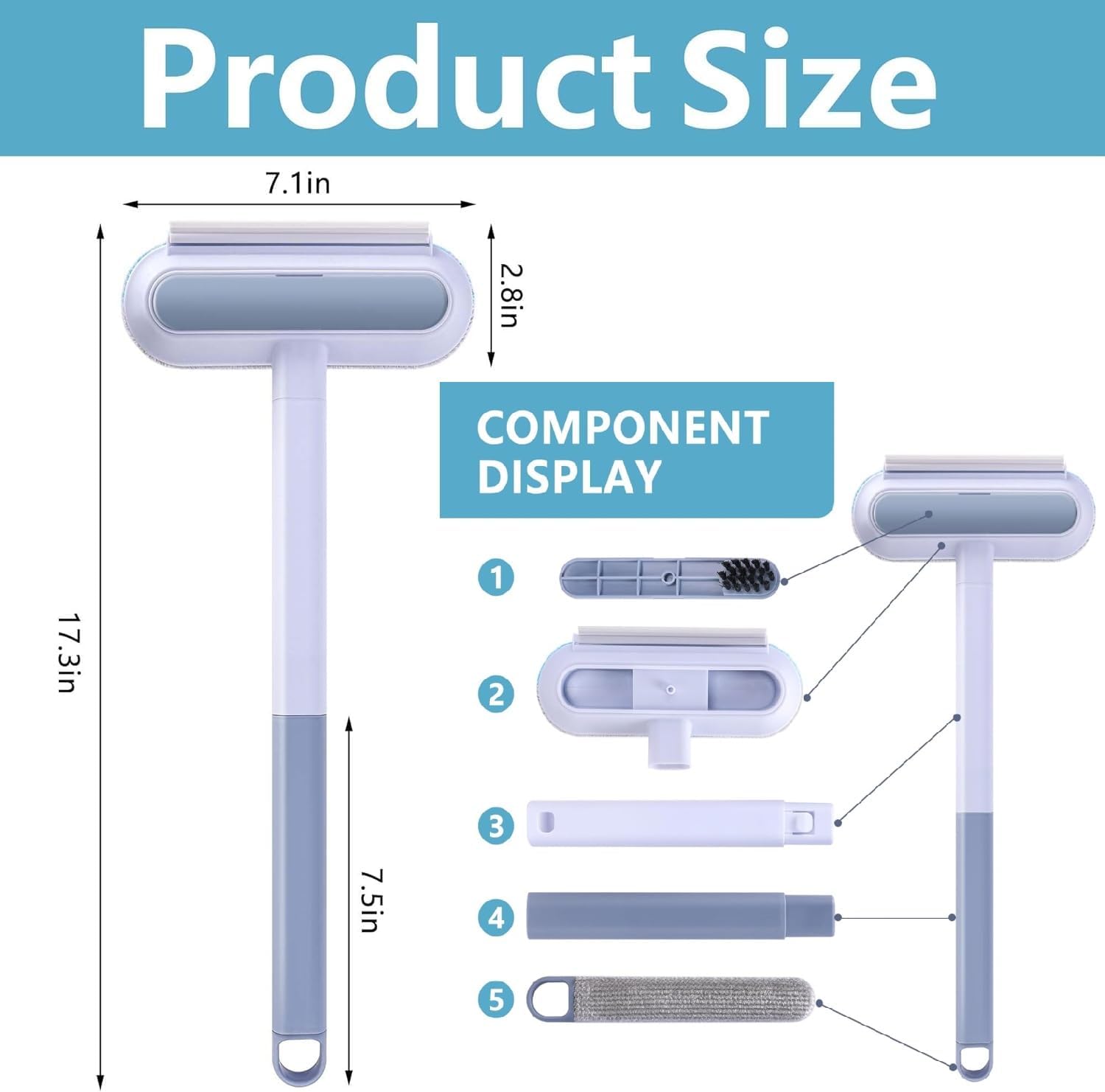 This is a 4 in 1 Multifunctional brush with long handle that you can clean window screens without taking them out of the frame,The window screen cleaner contains one main brush, one pcs build in squeegee and two pcs small brush for cleans tight spaces speeds up the scrubbing process. And an additional Hard bristle crevice cleaning brush.