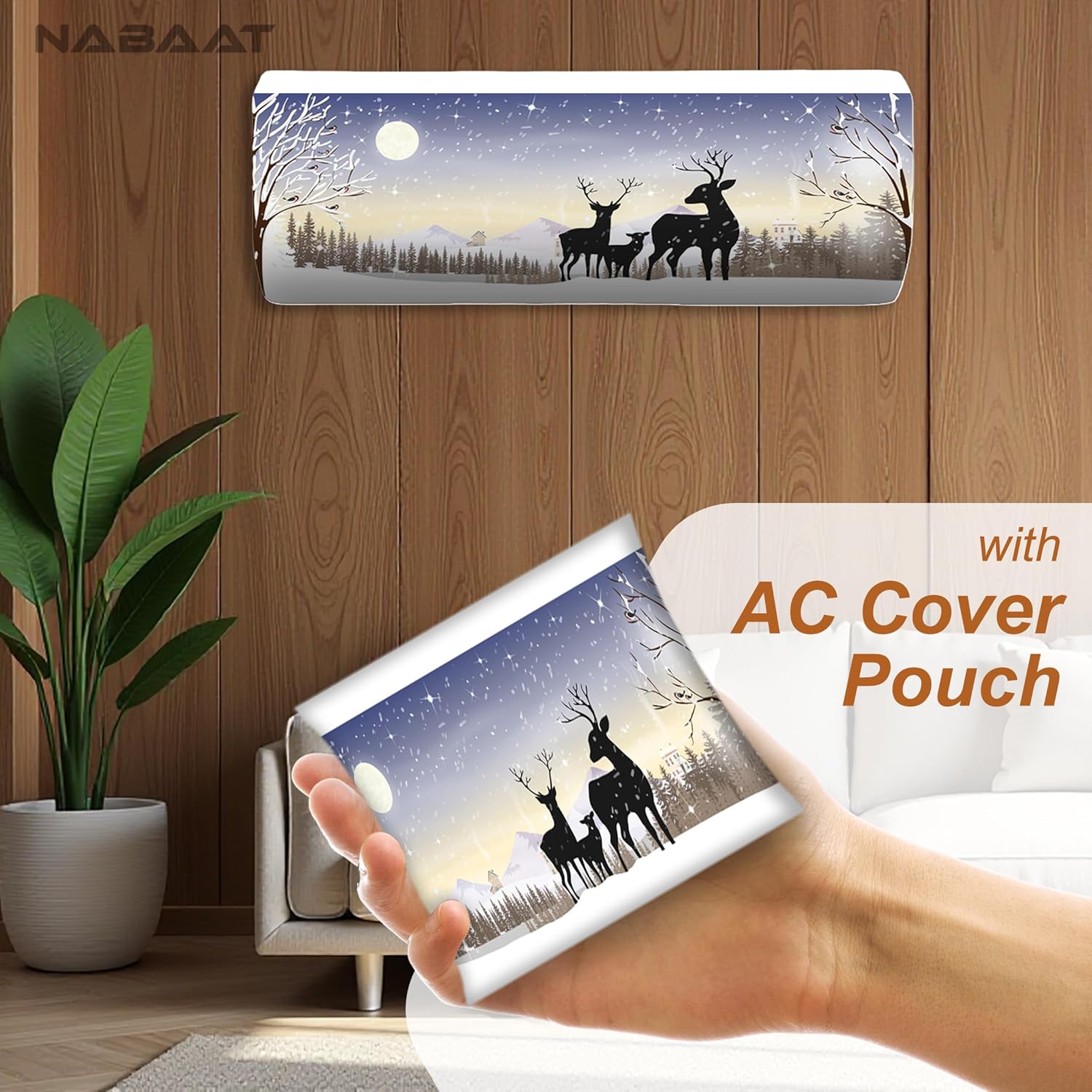NABAAT AC Cover for Split 1.5 Ton Indoor Printed Air Conditioning Wall Mounted Dust Cover Folding Designer (38”x 12”x 9”), Snow Scene