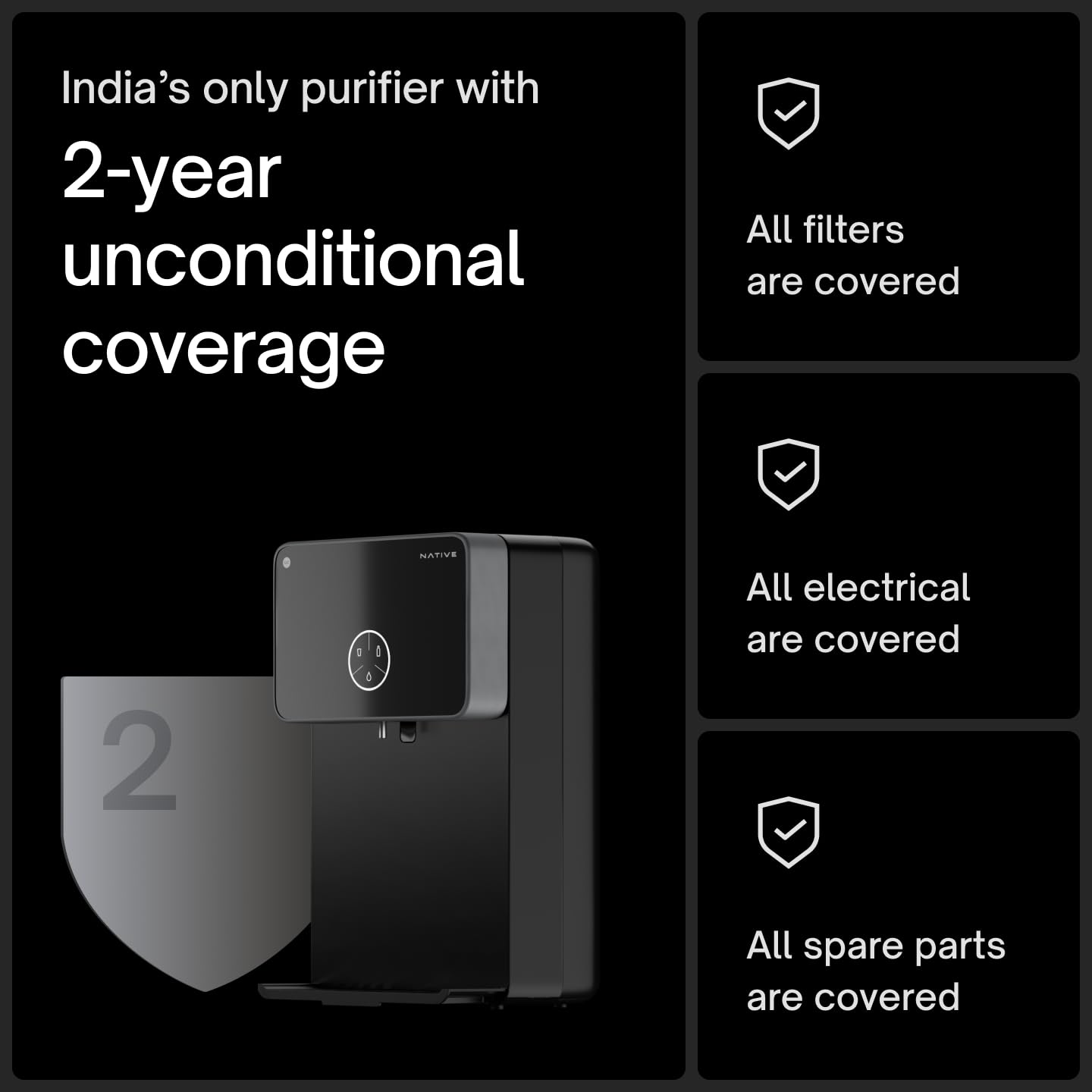 No Service for 2 Years: Advanced multi-micron filtration and self-cleaning technology means filters last a full 2 years without any maintenance, AMC or service calls. Save up to ₹20,000 on service costs over 8 years.
