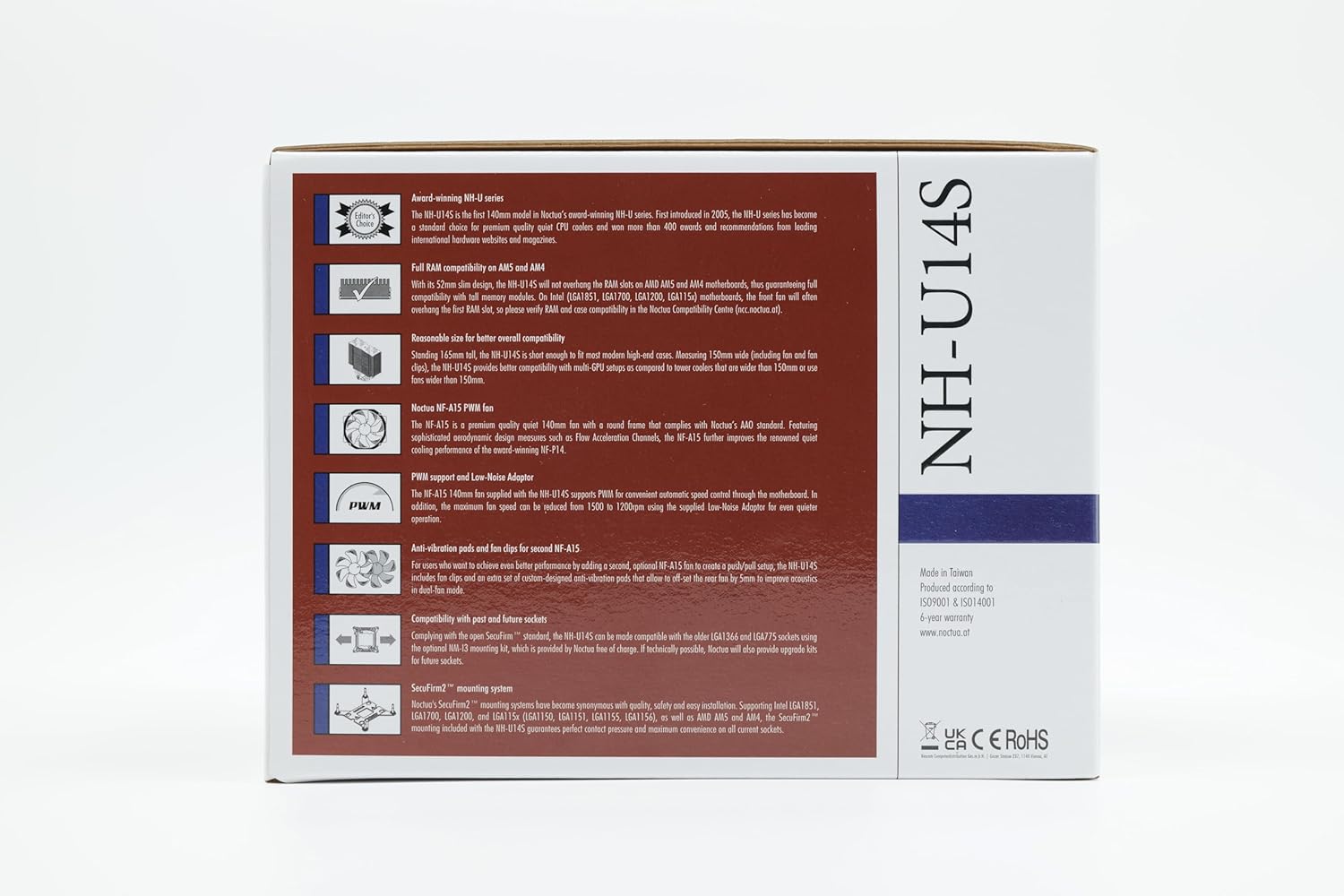 The NH-U14S is the 14cm top model of Noctua’s classic U-series single tower CPU coolers, which have received more than 400 awards and recommendations from the international press. While the large, six heatpipe design and the NF-A15 140mm fan with PWM support for fully automatic speed control allow the cooler to best the renowned quiet cooling performance of all other U-series coolers, its 52mm slim shape still assures full compatibility with tall RAM modules on LGA2011/LGA2066. Topped off with the trusted, pro-grade SecuFirm2 multi-socket mounting system and Noctua’s proven NT-H1 thermal compound, the NH-U14S is a complete premium quality solution that combines superb performance, high compatibility and quiet operation.