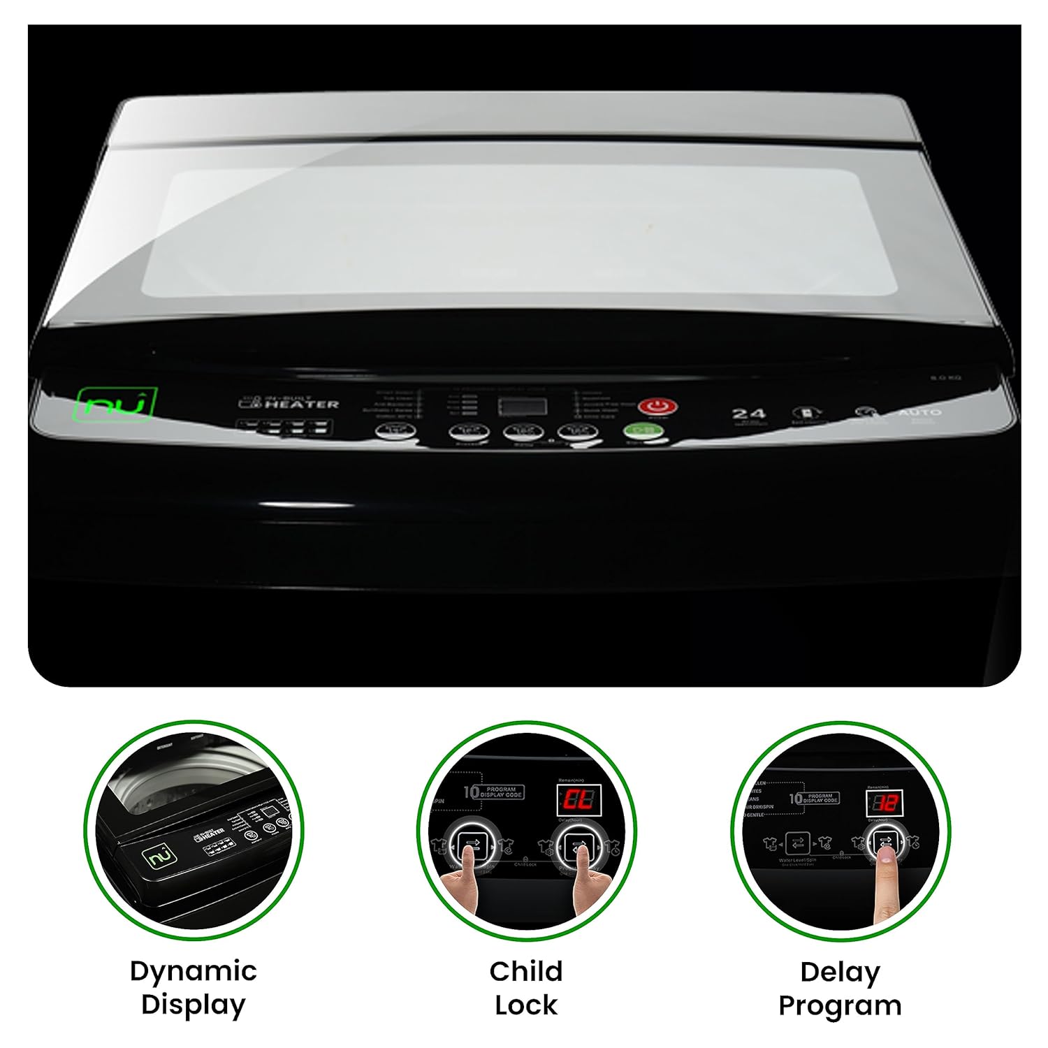NU 8 Kg Fully Automatic Top Load Washing Machine with Soft Close Premium Toughened Glass Lid (WFTLM80GD, Inox Grey)