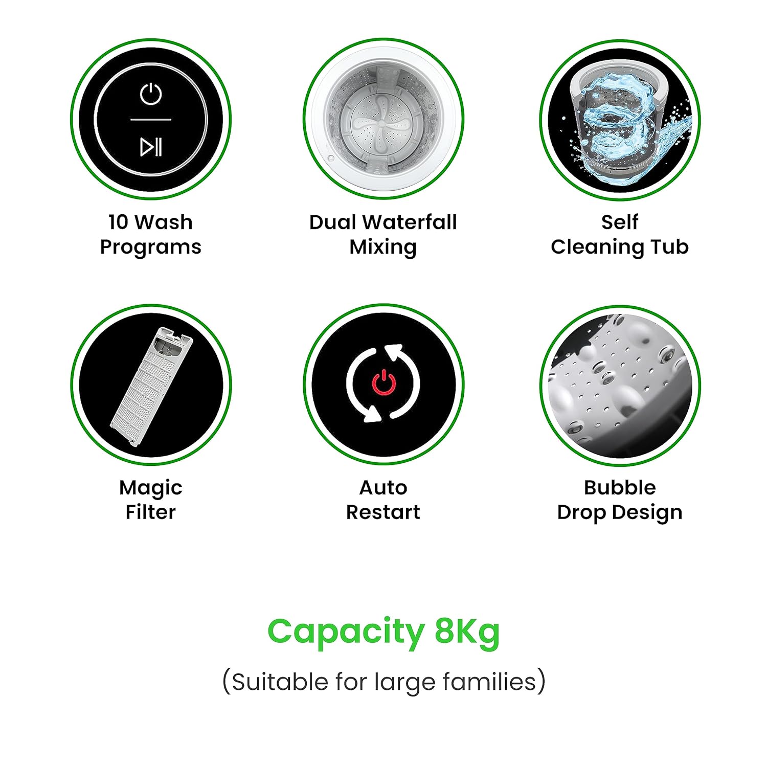 Water Resistant: IPX4 Resistant | Anti-rust. Capacity 8.0 Kg : Suitable for large families