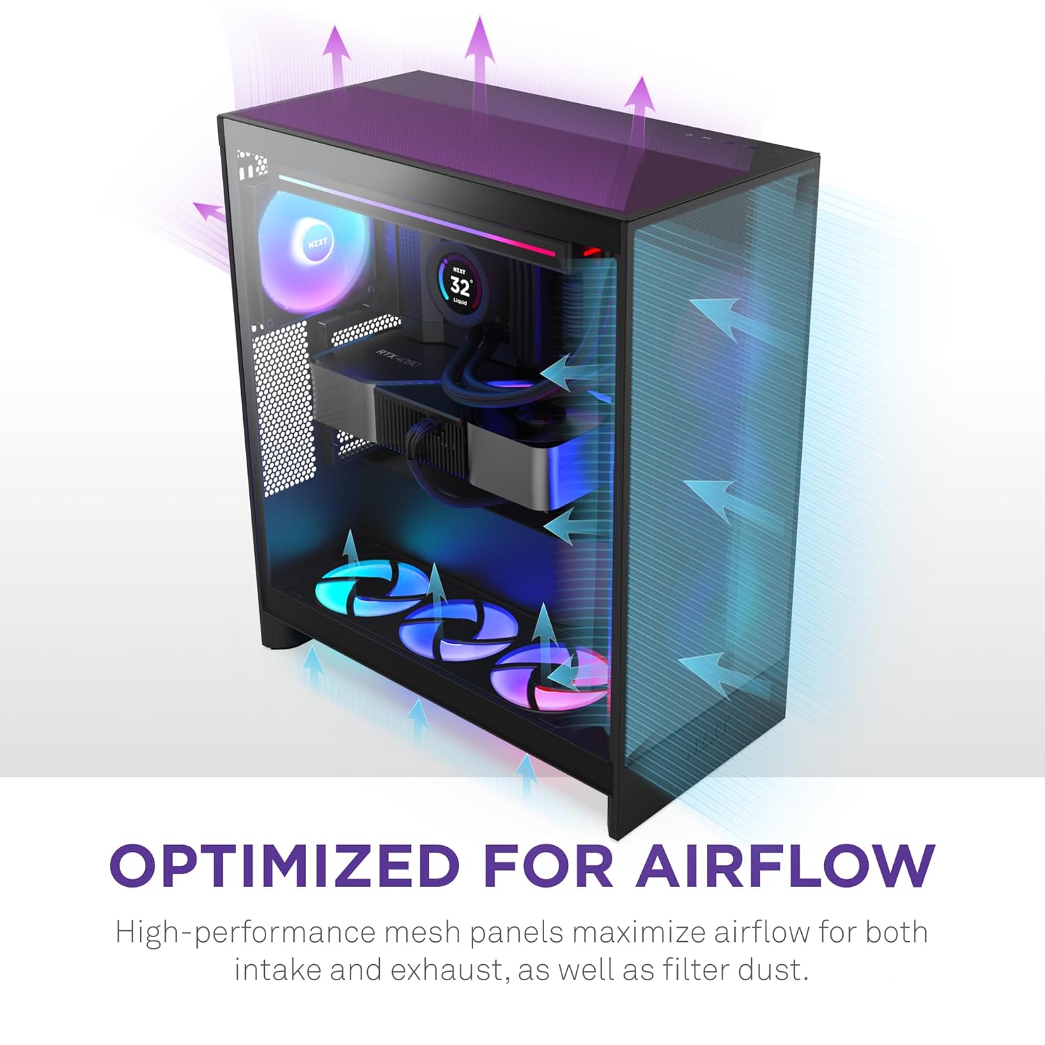 OPTIMIZED FOR AIRFLOW — High-performance mesh panels maximize airflow for both intake and exhaust, as well as filter dust.