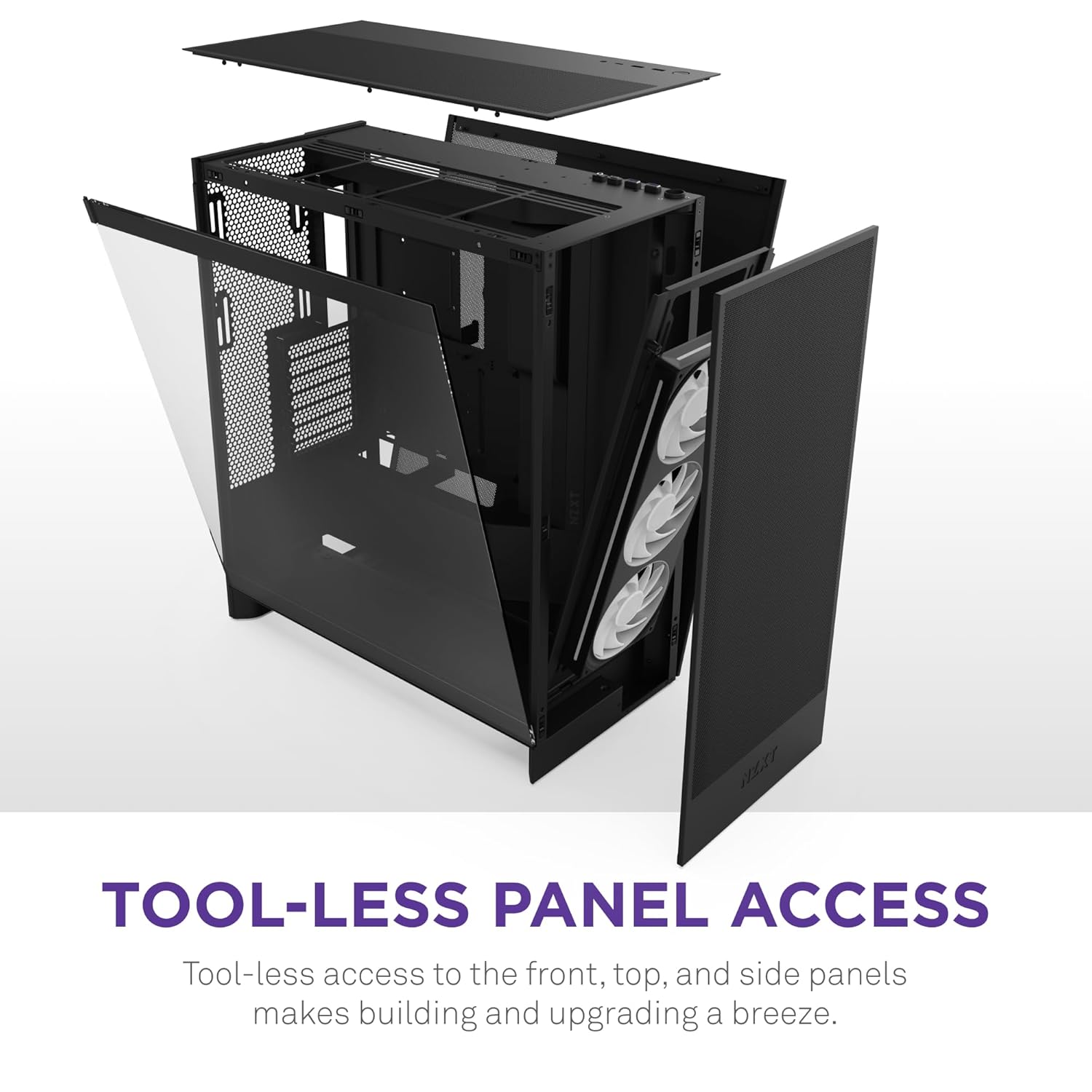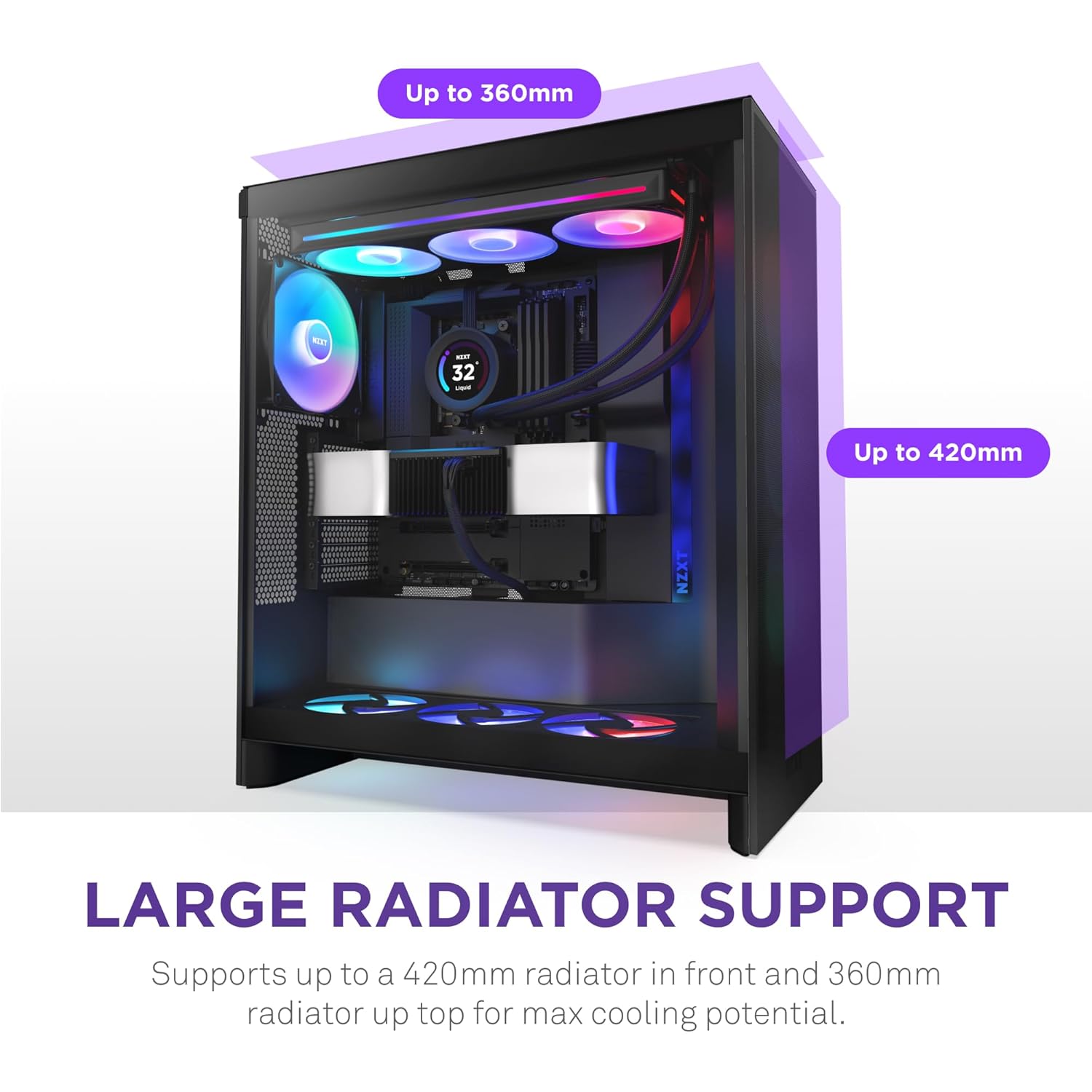 NZXT H7 Flow RGB 2024 Mid-Tower ATX Airflow Case – Includes 360mm RGB Single-Frame Fan Unit | Supports Bottom Fans for Dedicated GPU Cooling – Cable Management – Black – CM-H72FB-R1