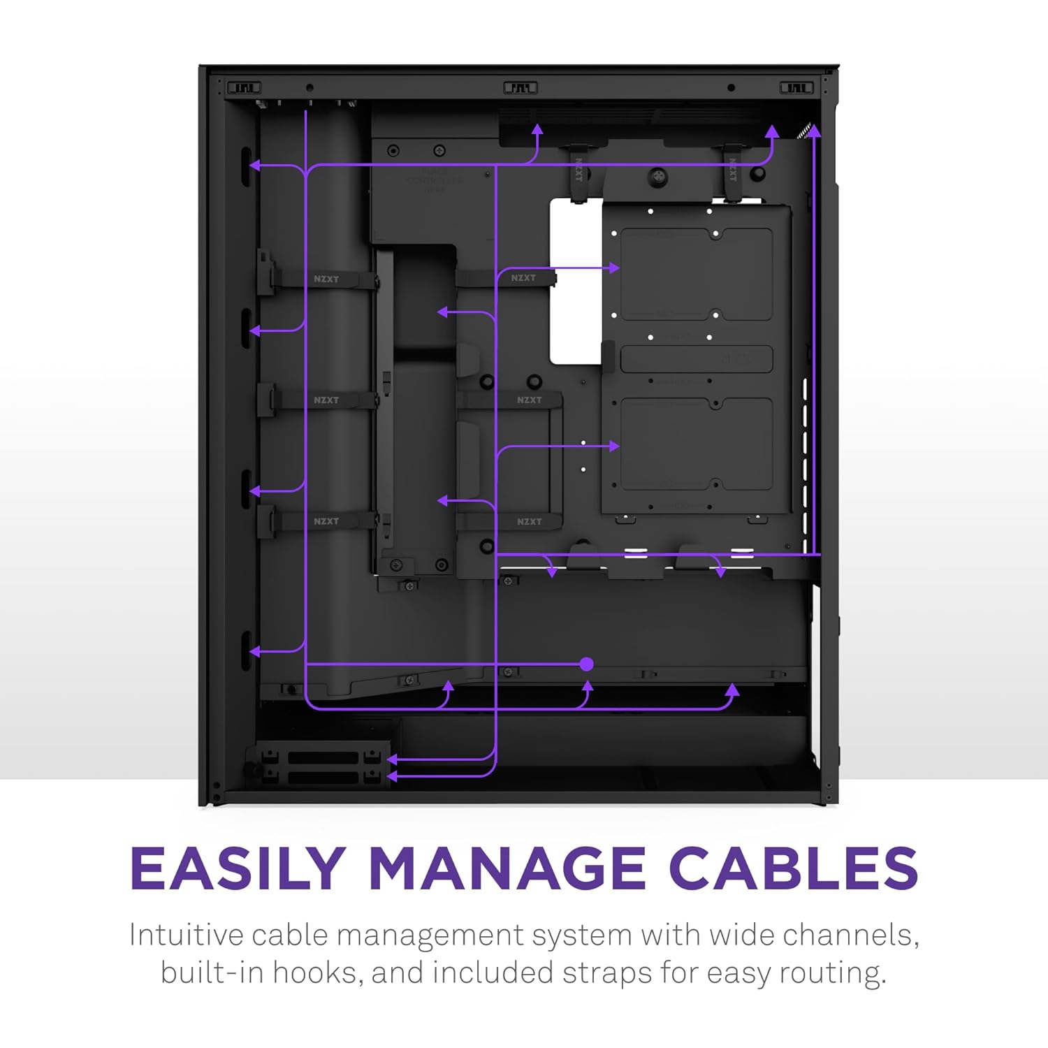 EASILY MANAGE CABLES — Intuitive cable management system with wide channels, built-in hooks, and included straps for easy routing.