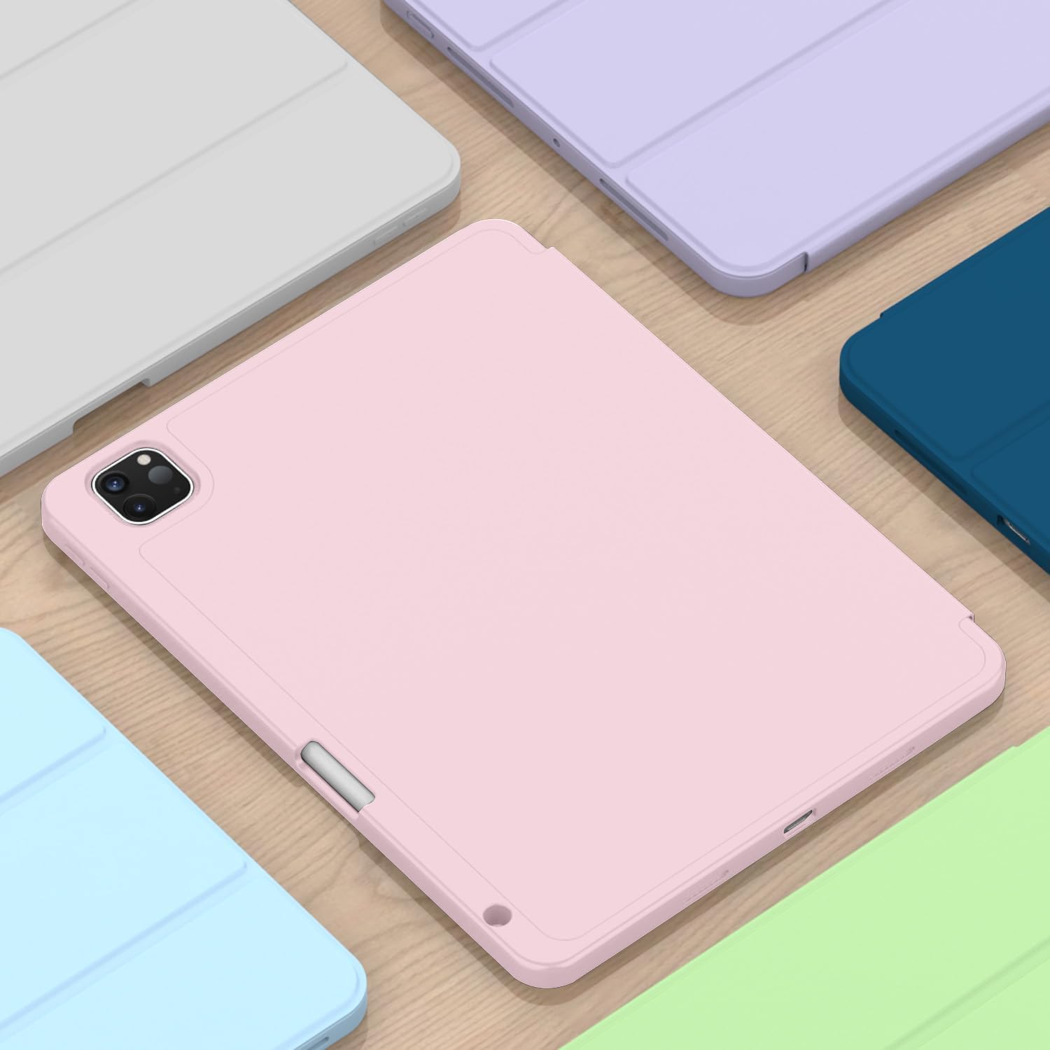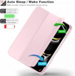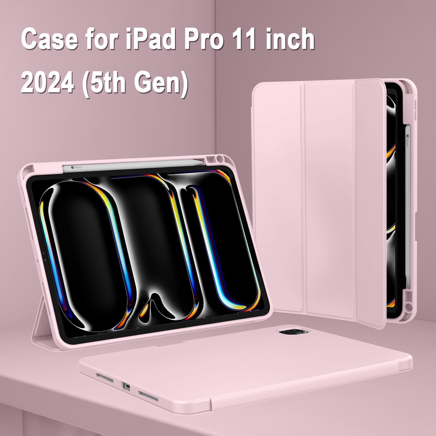 Oaky Pencil Holder Case for Apple iPad Pro 11 inch 2024 M4 5th Gen Model – A2836, A2837 Cover Slim Trifold Stand with Auto Wake/Sleep Soft TPU Back Cover – Pink
