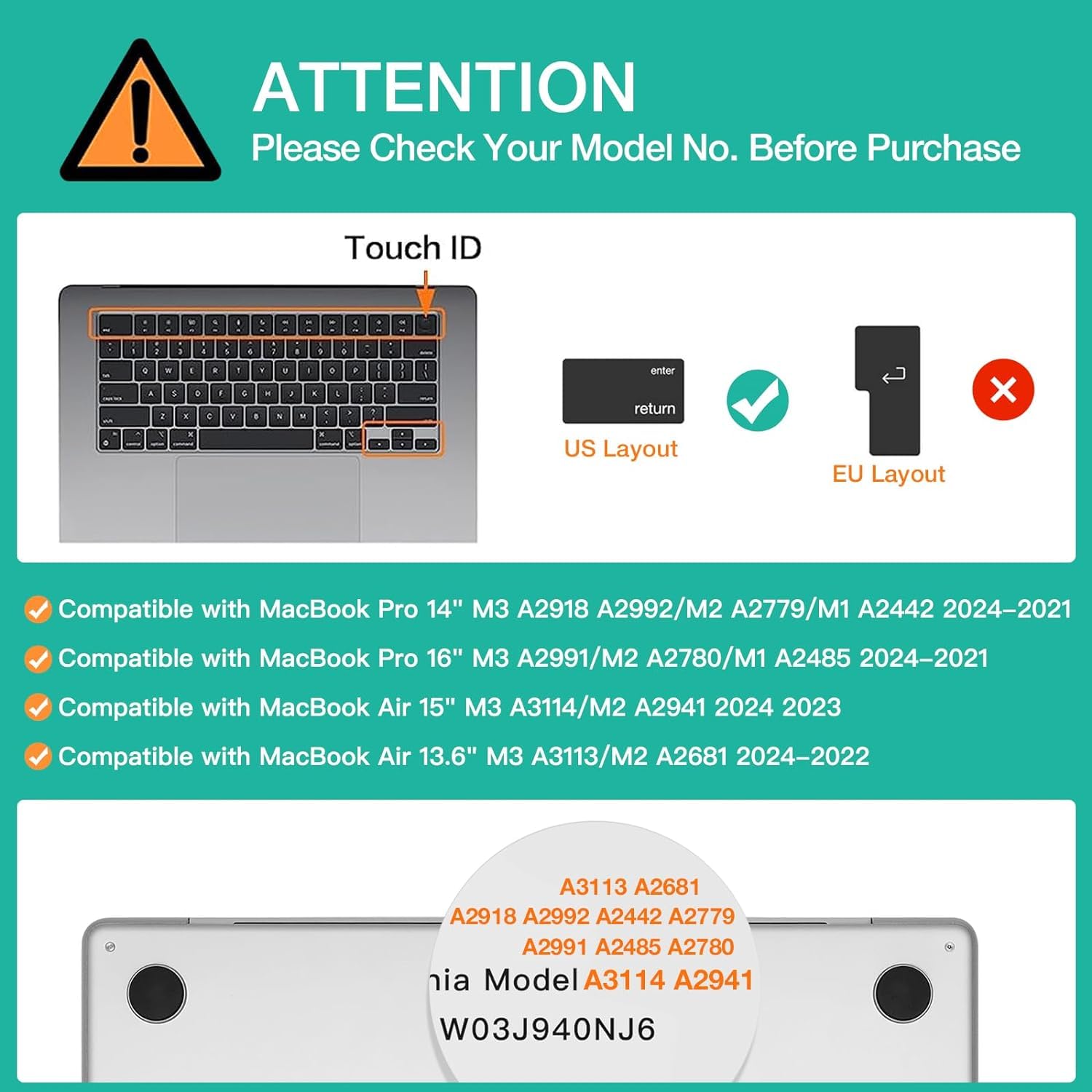 NOTE: This item is Not applicable to Macbook air 13 inch, Model: A2337 M1/ A2179/ A1932,released between 2018-2021