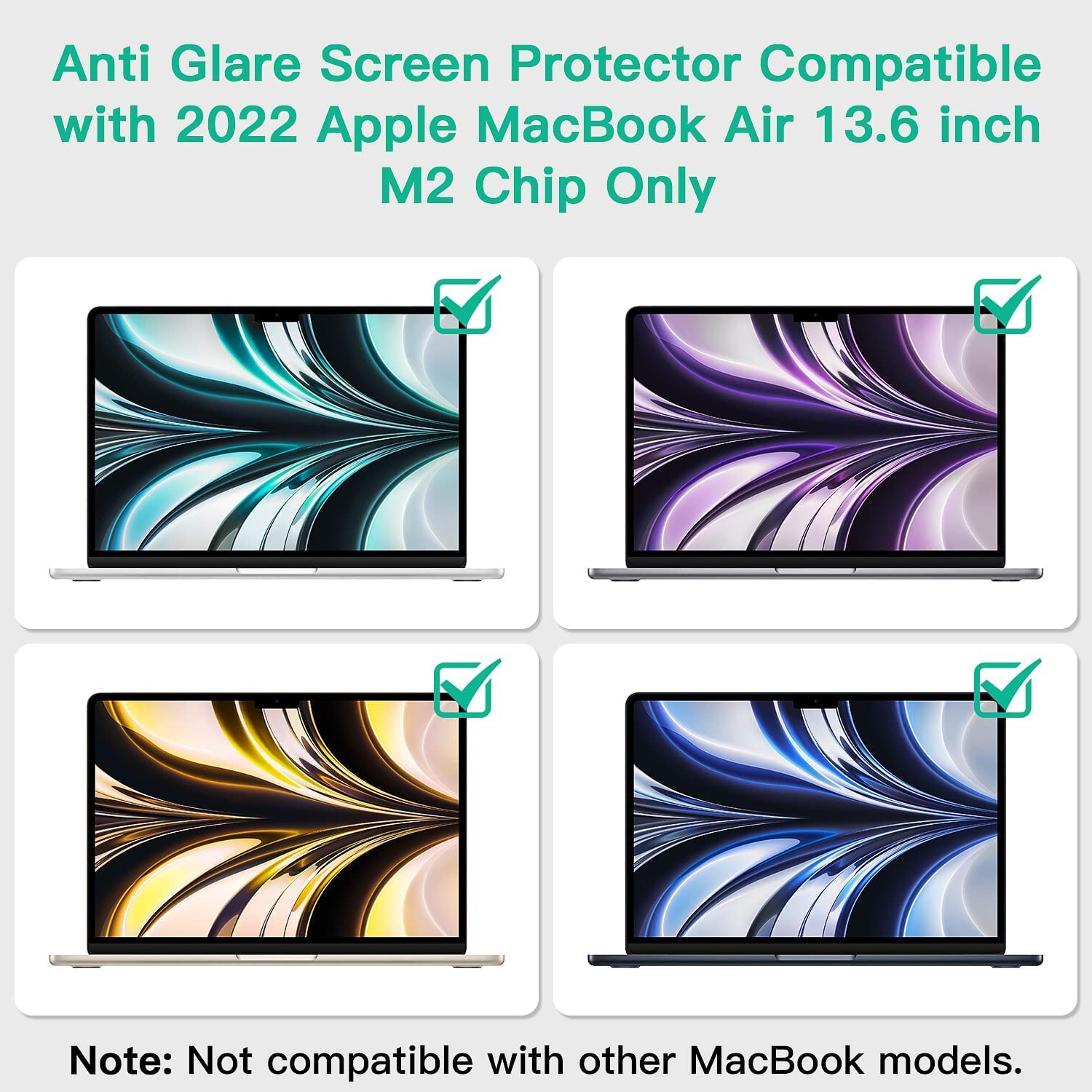 Unique Compatibility: This anti glare screen protector is specially designed to fit the MacBook Air 13.6 inch Case 2022 2023 2024 Release M3 A3113 M2 A2681. Does not compatible with other MacBook models. Be sure to clean the screen completely before installation.