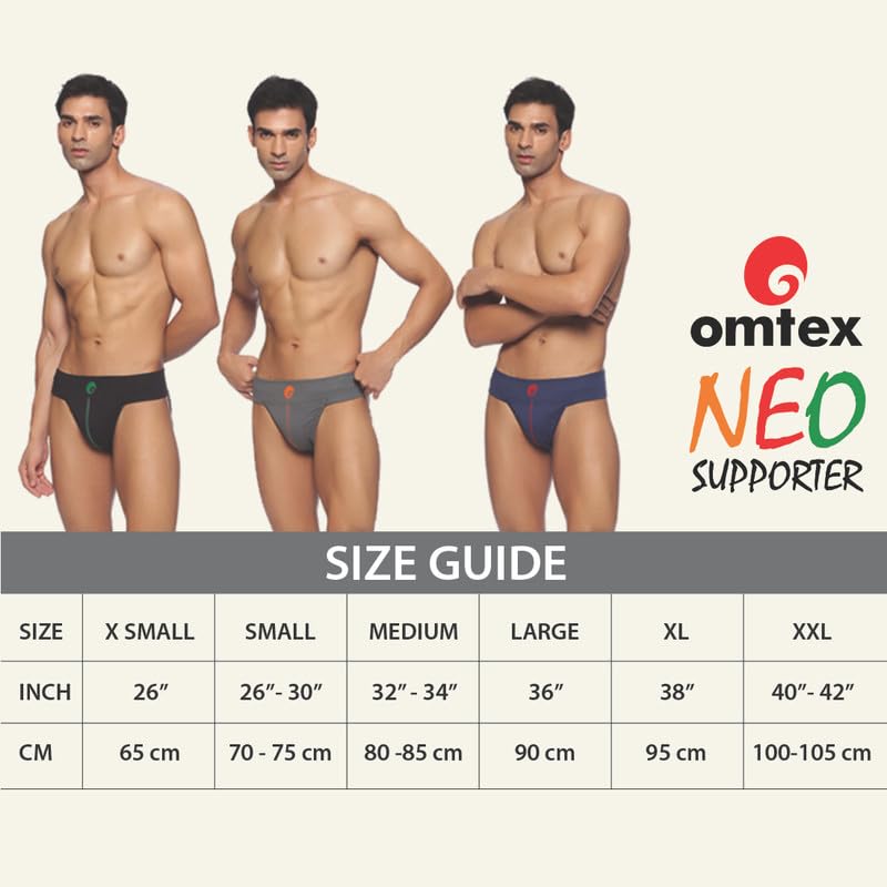 omtex Athletic Neo Stretchable Supporter Back Covered with Cup Pocket, Ideal for Workout and Sports Quick Dry Moisture Wicking Underwear (Pack of 2)