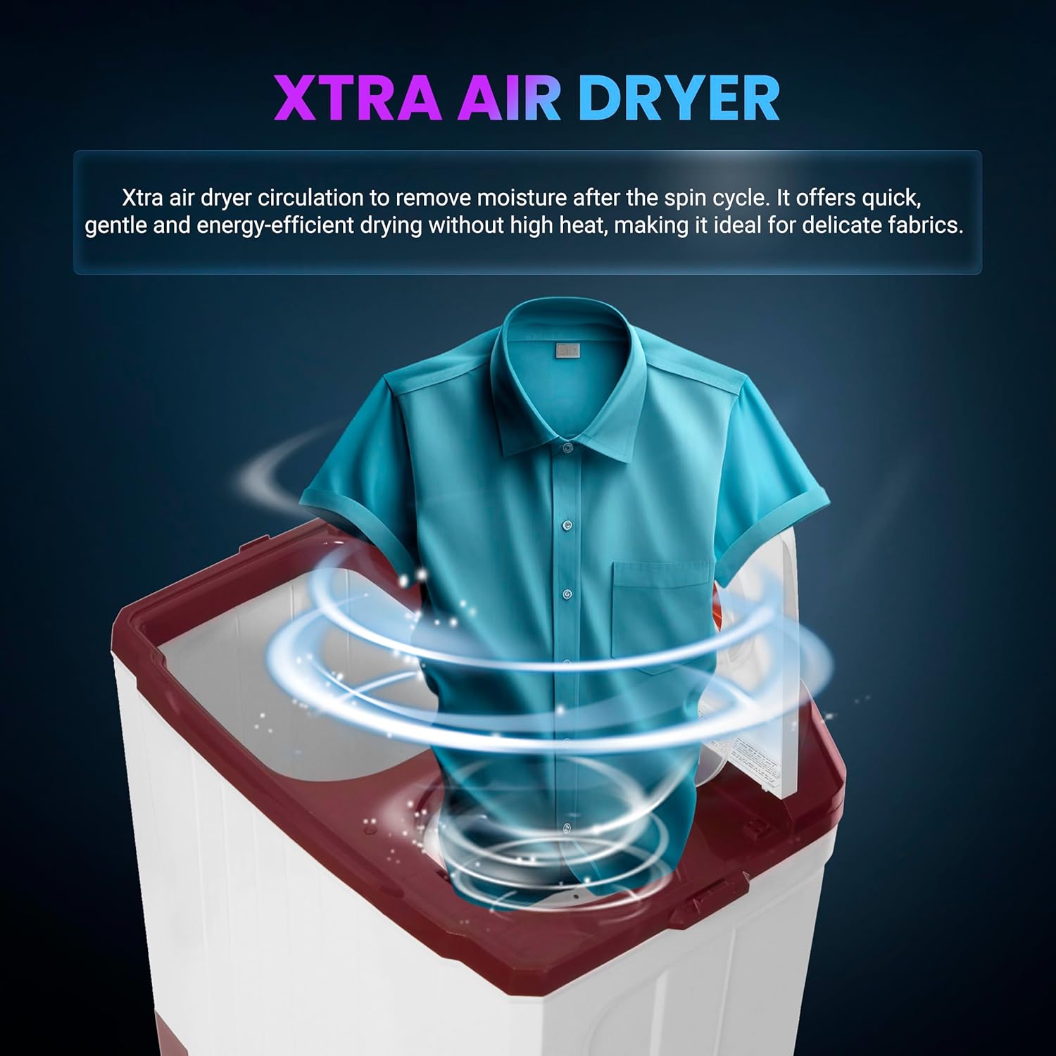 Semi-automatic washing Machine: Economical, Low water and energy consumption, involves manual effort; Has both washing and drying functions