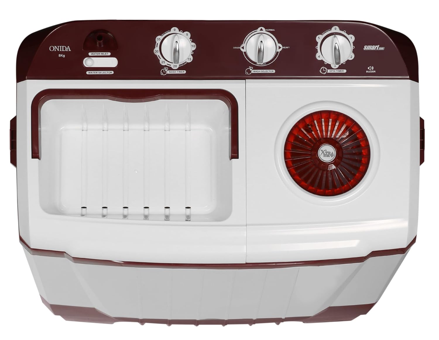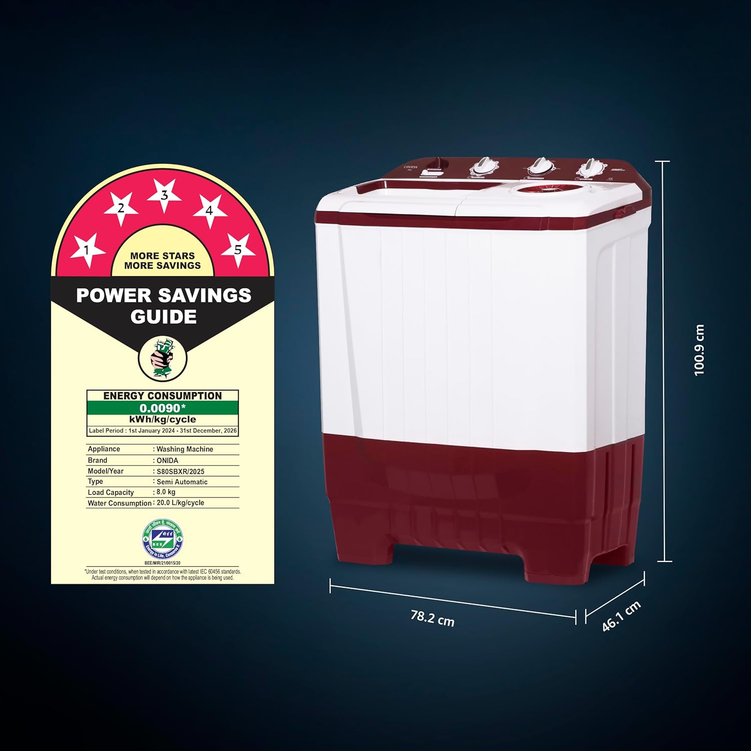 Onida 8 Kg 5 Star Semi-Automatic Top Loading Washing Machine (S80SBXR, White, 1450 RPM, Magic Filter, With Additional Basket)