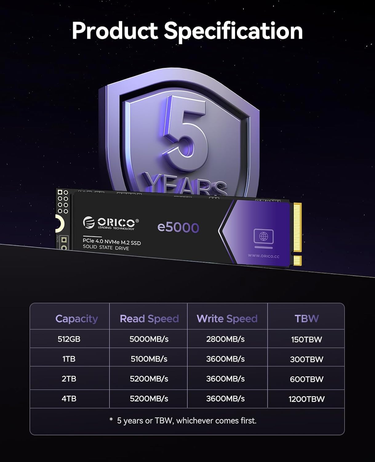 【Blazing Speed Unleashed】The ORICO e5000 M.2 SSD leverages the latest PCIe 4.0 interface to deliver blazing-fast performance with read speeds up to 5100MB/s. Enjoy instant program launches, rapid file transfers, and seamless multitasking with exceptional speed and efficiency