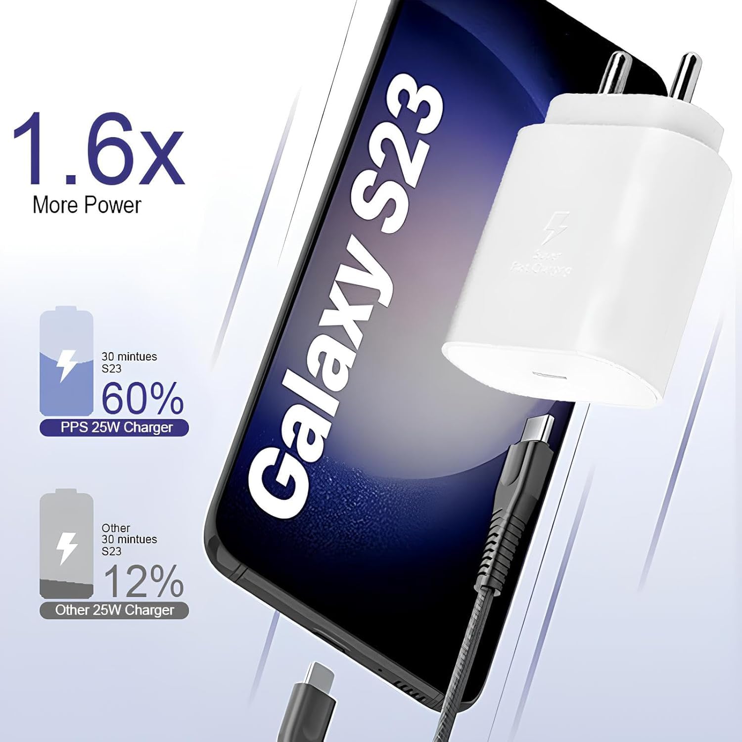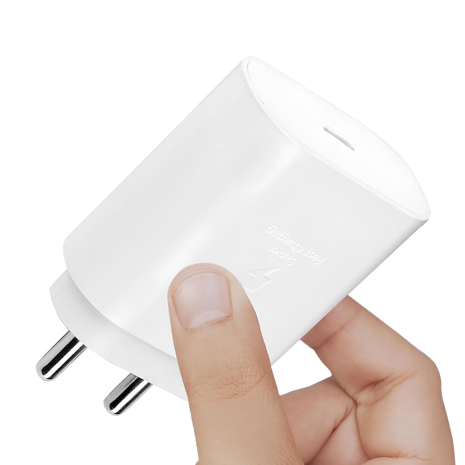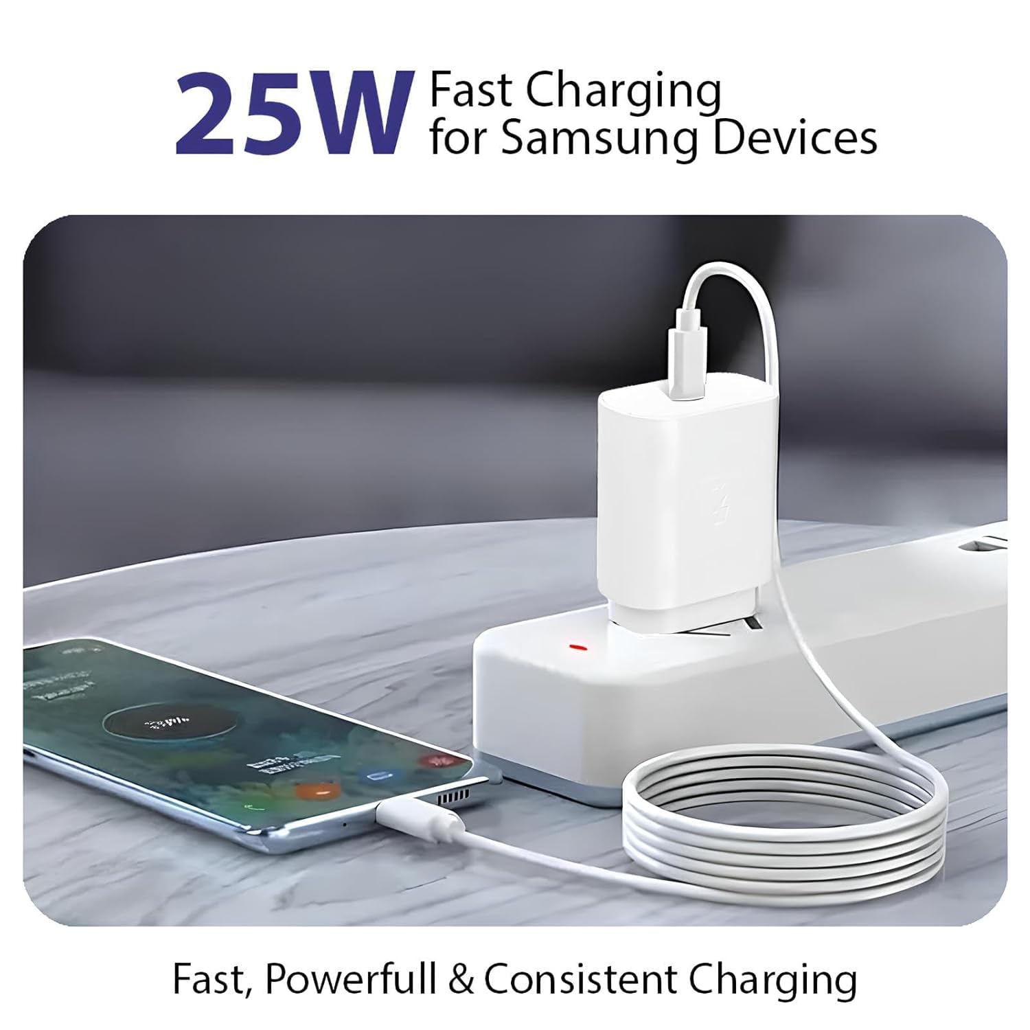 Original 25W Type-C Super Fast Charger Adapter | Compatible with Samsung Galaxy M05, M15, F15, A15, M35, A55, M55, S23 FE, S21 FE, S24, Z Fold/Flip 6/5/4/3, A14, M14, F14, Tab Series & More (White)