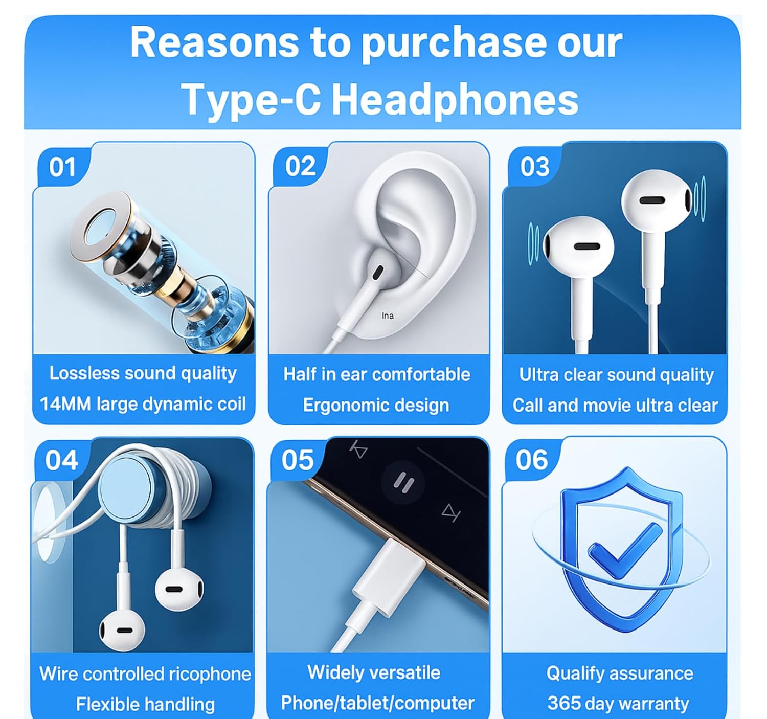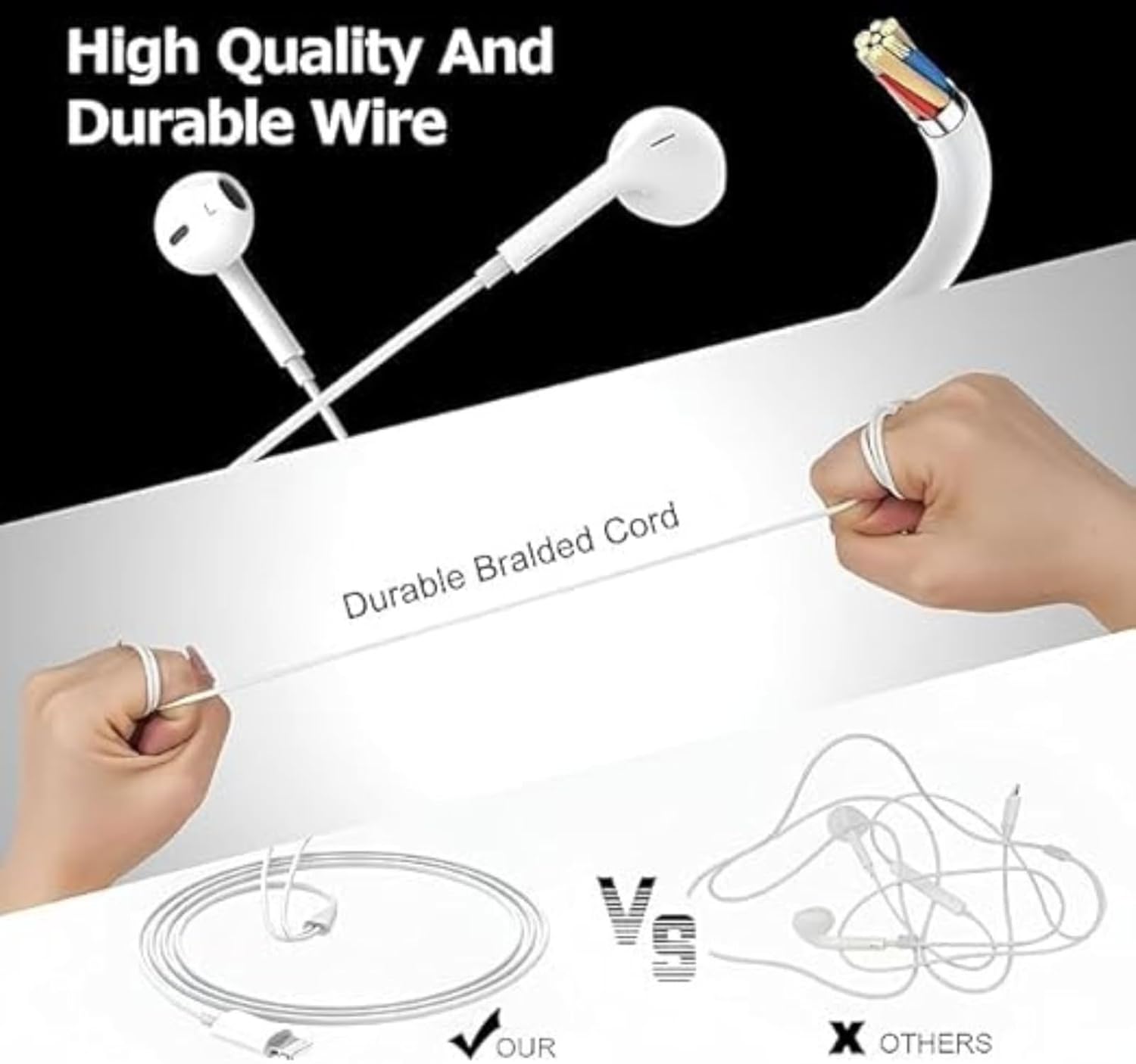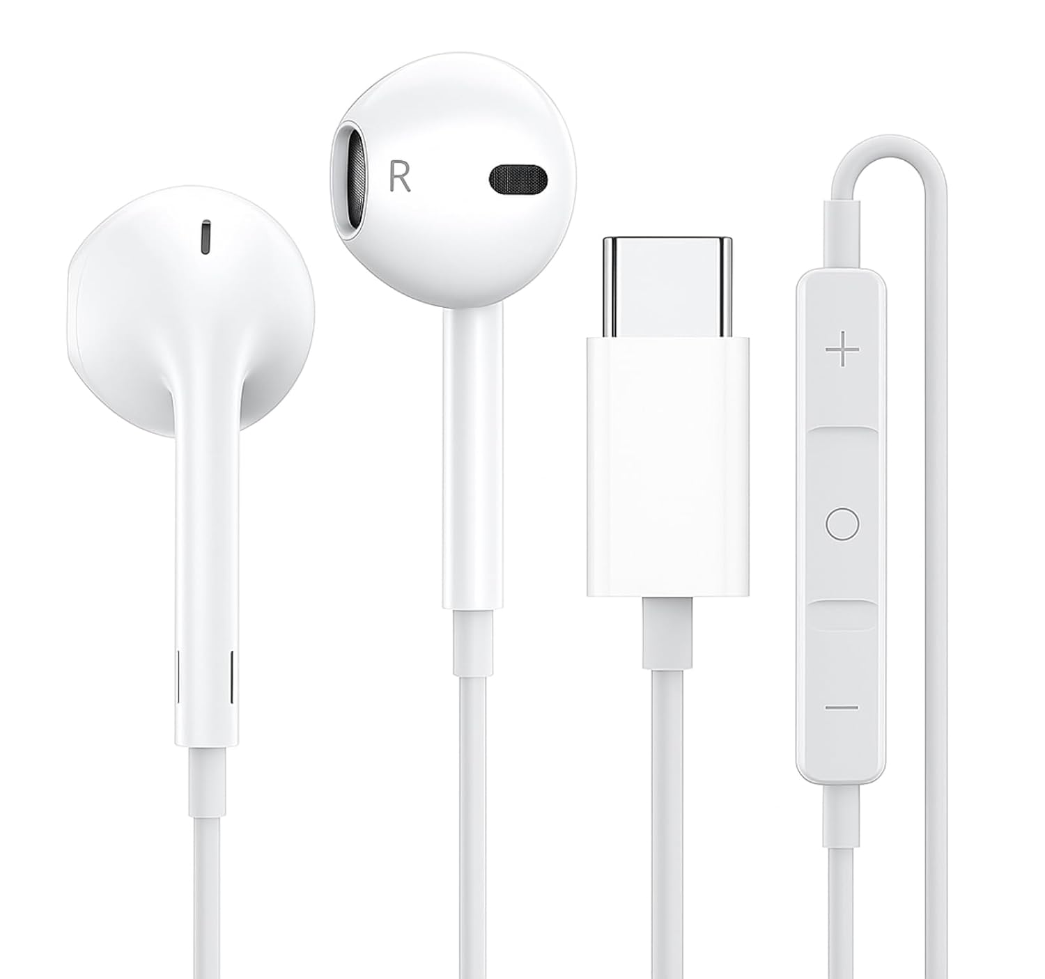 Experience superior audio quality with these USB Type-C wired earphones, specially designed compatibility for iPhone 15, 16, and 17 series. These earphones feature intuitive controls for a seamless user experience, including volume adjustment, music playback control, and call management. The built-in microphone ensures crystal-clear voice calls, while the ergonomic design provides comfort during extended use. The multifunctional control panel allows you to play/pause music with a single click, skip tracks with a double click, and access previous tracks with a triple click. Call handling is equally convenient – answer or end calls with a single click, and reject calls with a long press. The durable white finish and premium build quality ensure longevity, while the USB-C connector provides a secure, stable connection. These earphones deliver balanced sound with clear highs and rich bass, making them perfect for both music enthusiasts and professionals who need reliable audio equipment for their daily communications.