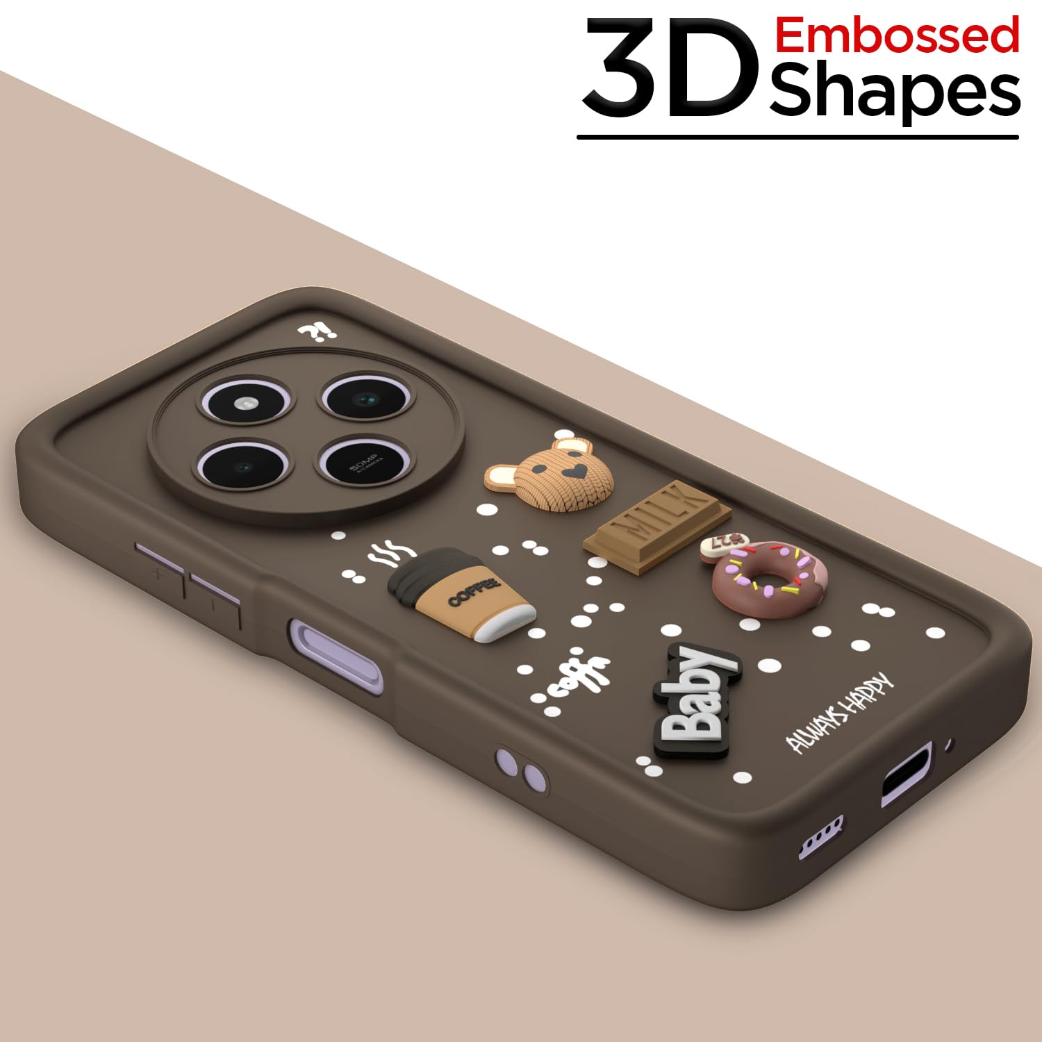 Outlouders Back Cover for Redmi A4 5G / Redmi 14C 5G / Poco C75 5G | 3D Cartoon Cute Fun Bear | Silicone Full Body Protection Bumper Case (Brown)