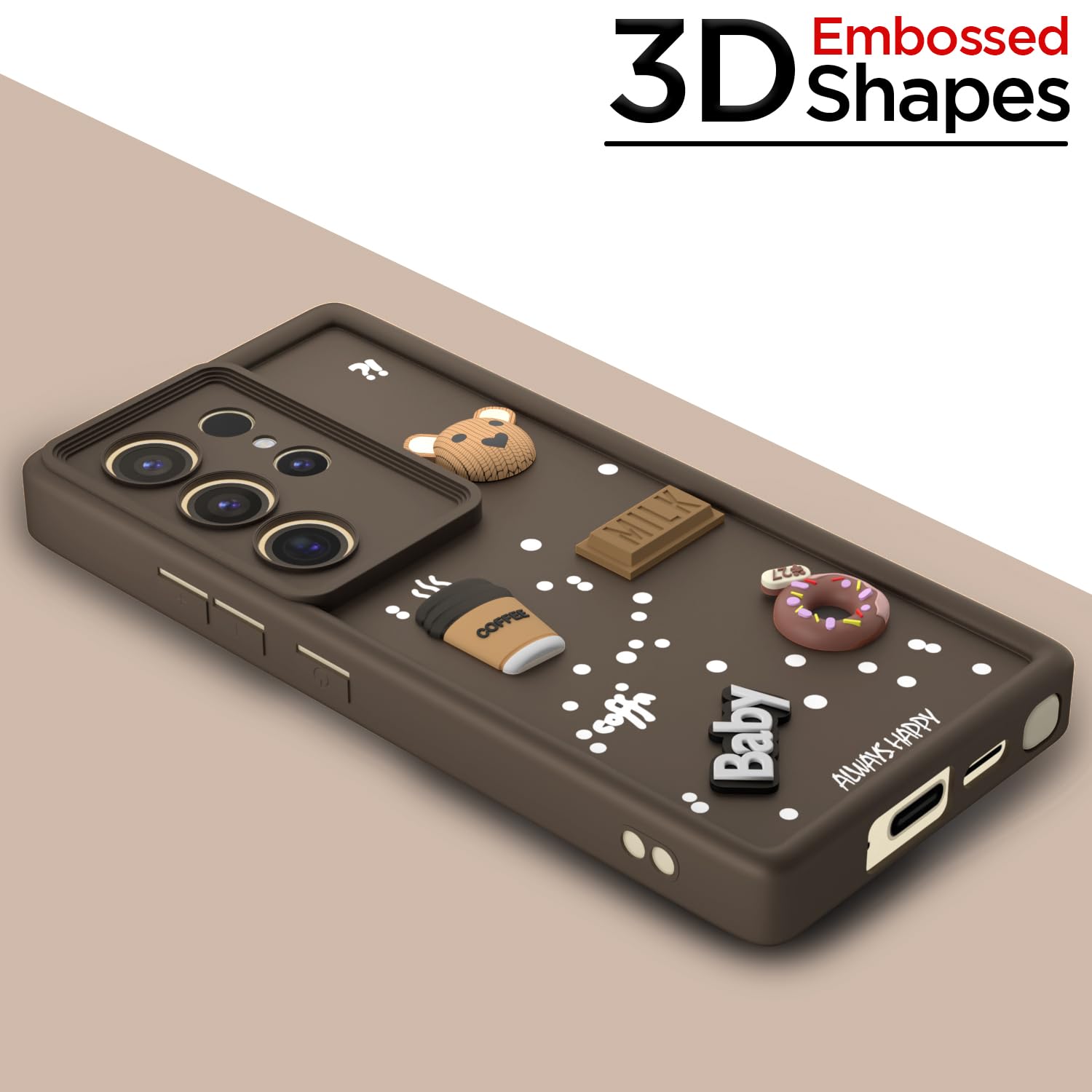 Outlouders Back Cover for Samsung Galaxy S24 Ultra 5G | Cute Fun Cartoon 3D Bear Silicone | Full Body Protection Bumper Case (Brown)