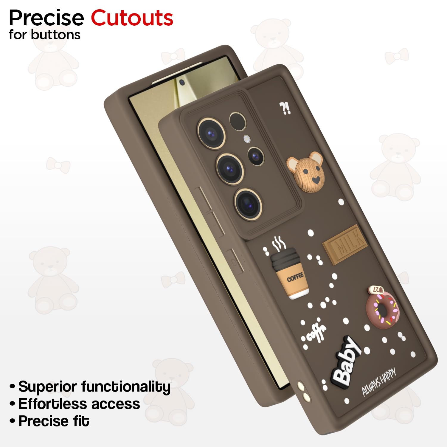 Adorable Design – Cute 3D cartoon bear adds fun and personality to your phone