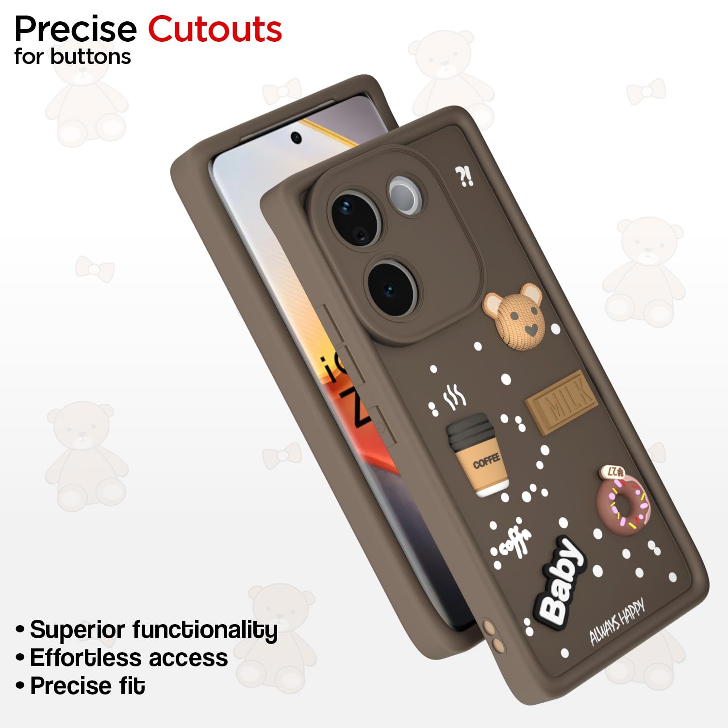 Outlouders Back Cover is the perfect mix of fun and protection. Made from soft yet sturdy silicone, it features an adorable 3D cartoon bear that brings some personality to your phone. This case gives your device full-body protection, keeping it safe from drops, bumps, and scratches. It’s designed to fit perfectly, allowing easy access to all your buttons, ports, and camera functions. Plus, it’s lightweight, so your phone stays slim and easy to handle. The anti-slip texture also improves your grip, making it comfortable to hold. If you want to add some fun to your phone while keeping it protected, this case is for you.