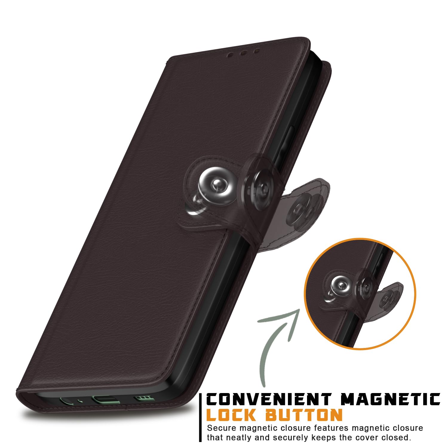 Outlouders Genuine Leather Finish Flip Back Cover Case | Inbuilt Pockets & Stand | Wallet Style | Designer Button Magnet Flip Back Cover Case for Realme C61 / Realme Narzo N61 (Coffee)