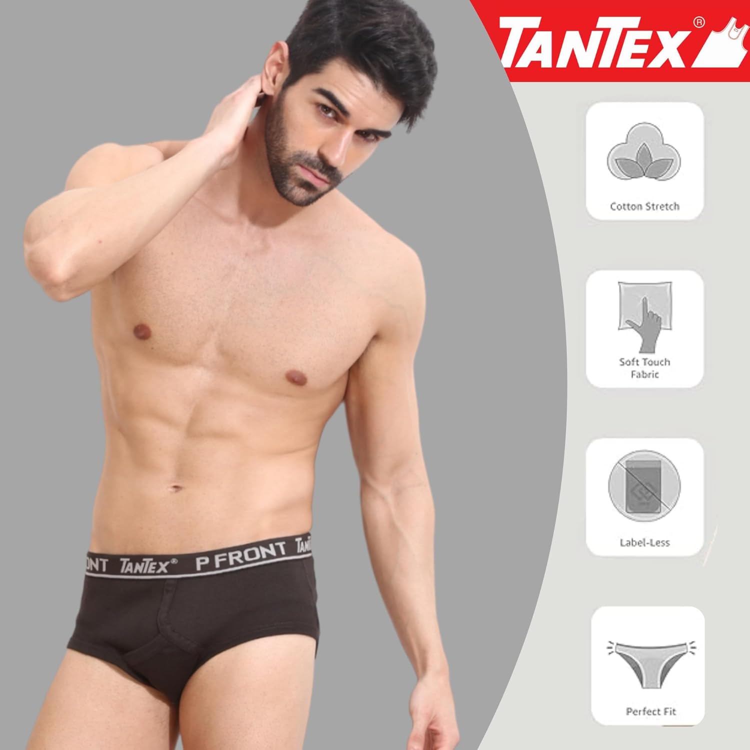 P Front Men’s Super Combed Cotton Solid Brief with Ultrasoft Waistband,Steel Grey_3XL Pack of 5