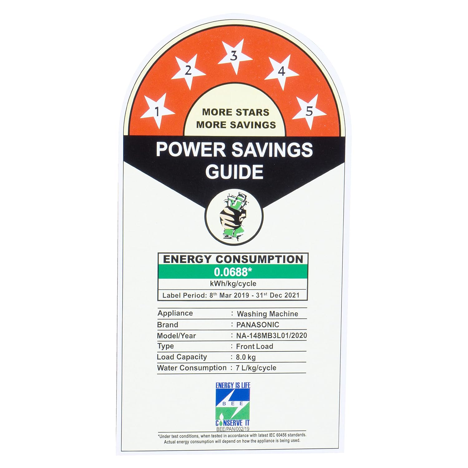 Panasonic 8 kg 5 Star Fully Automatic Front Loading Washing Machine (NA-148MB3L01, Grey), Free 1 Year Extended warranty