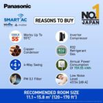 Powerful Cooling Featuring a Powerful mode, this 1.5-ton air conditioner offers rapid cooling, which is ideal for hot days. Designed to perform efficiently even in temperatures up to 55°C, it ensures reliable comfort, no matter how intense the heat outside. Smart Connectivity Offering smart Wi-Fi for remote control via smartphone, this Panasonic air conditioner also supports voice commands through Alexa and Google Assistant. Featuring Matter compatibility, it seamlessly integrates with smart home ecosystems for a connected experience. Enhanced Durability The EcoTough construction and Shield Blu+ coating of this smart air conditioner protects it from the elements which prevents corrosion and ensuring durability. This makes it a reliable choice for coastal areas or high-humidity environments which provide reliable long-term use. Energy Efficiency Operation This air conditioner operates efficiently within a voltage range of up to 100-290V and is inverter compatible, which makes it energy-efficient even during power fluctuations. This helps you save on electricity bills while still enjoying optimal cooling performance. Clean and Fresh Air Equipped with PM0.1 and Ag Clean+ filters, this inverter air conditioner traps fine dust and bacteria which ensures clean air. Featuring Crystal Clean technology, it keeps the air free from dust and impurities which provides a fresh atmosphere.