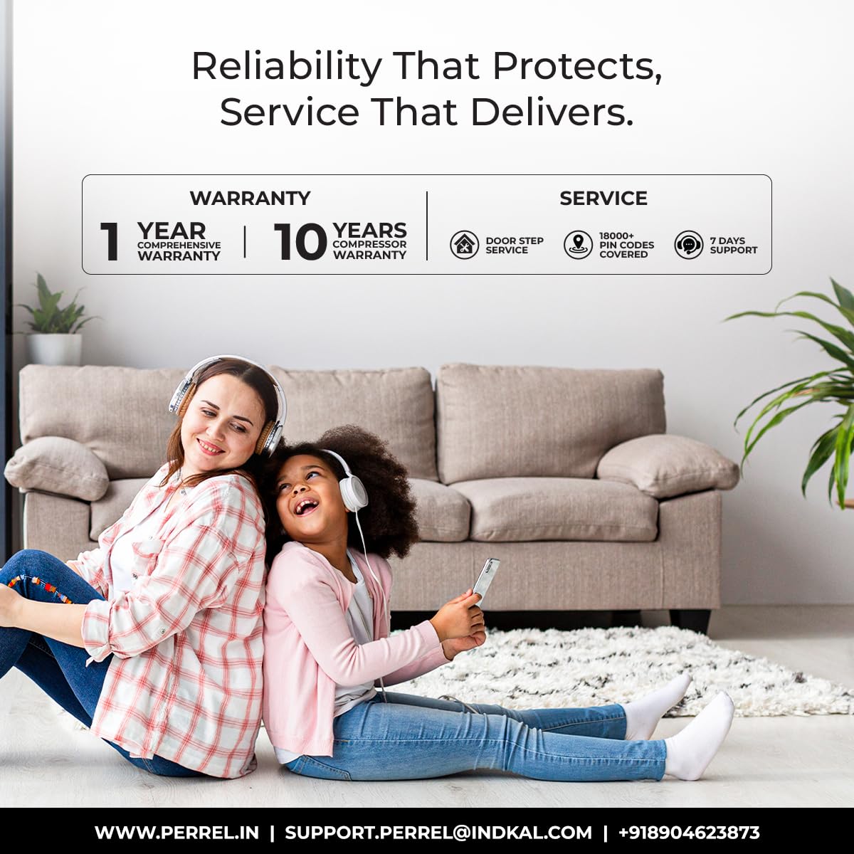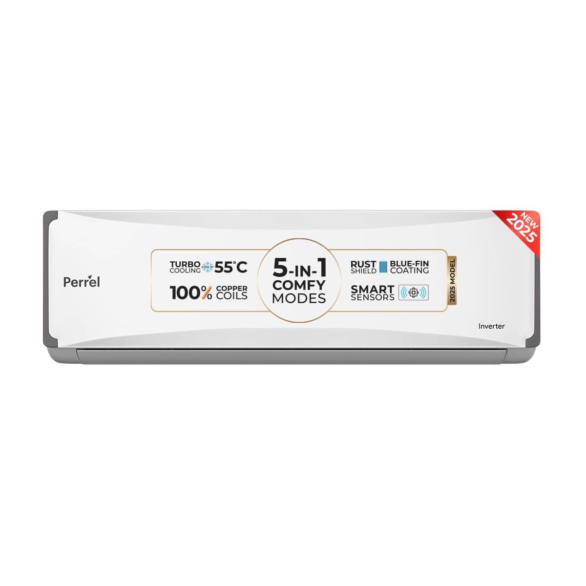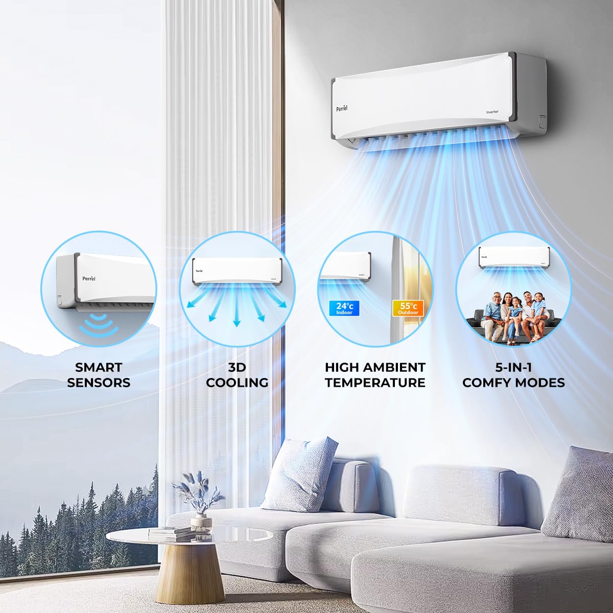 Perrel Split AC with Inverter Compressor: Adjusts power automatically based on heat load for optimal performance.