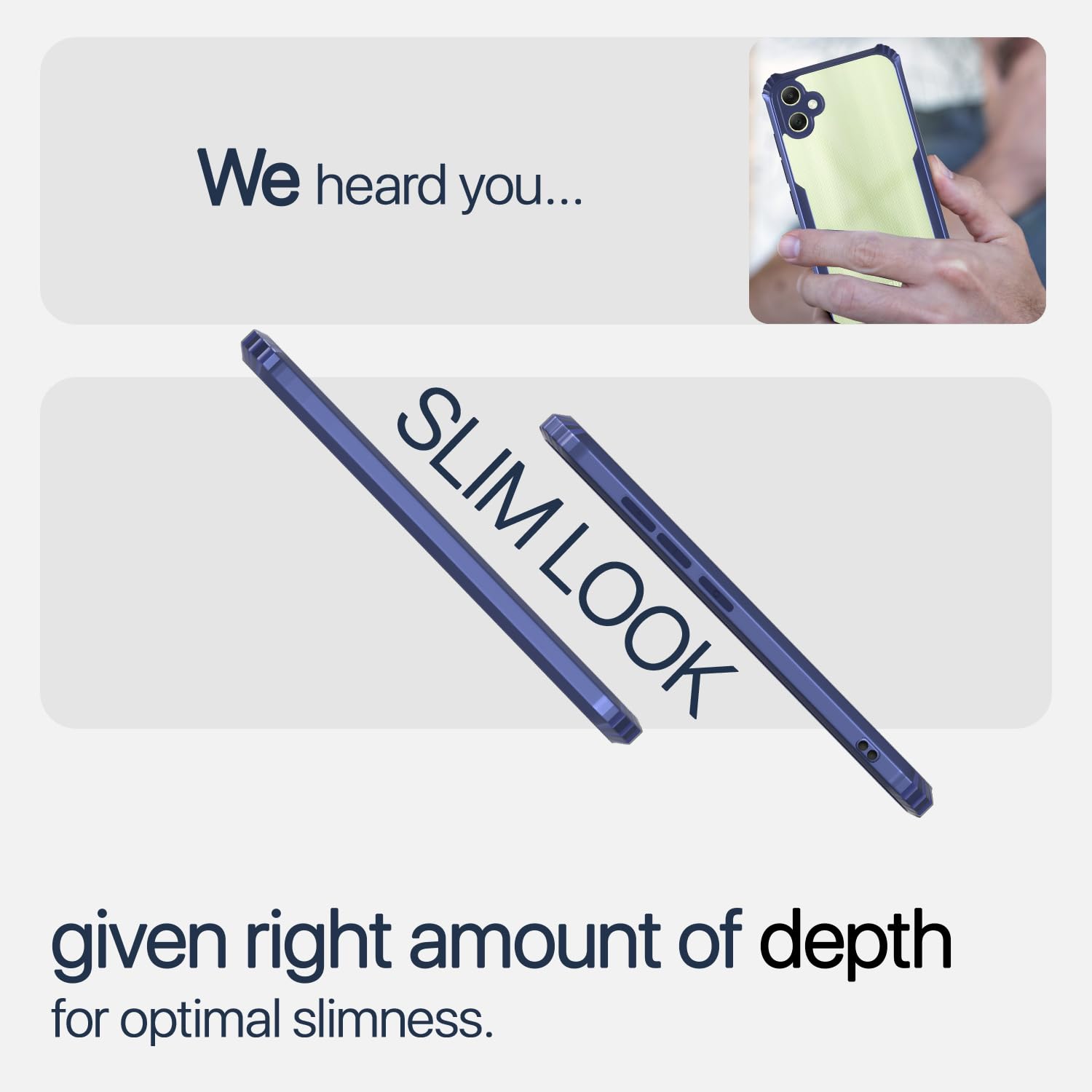 Pikkme Back Cover | Crystal Clear Transparent Back | Ultra Hyrbid | Full Camera Protection | Raised Edge | Bumper Back Case for Samsung Galaxy A05 / M05 / F05 (Blue)