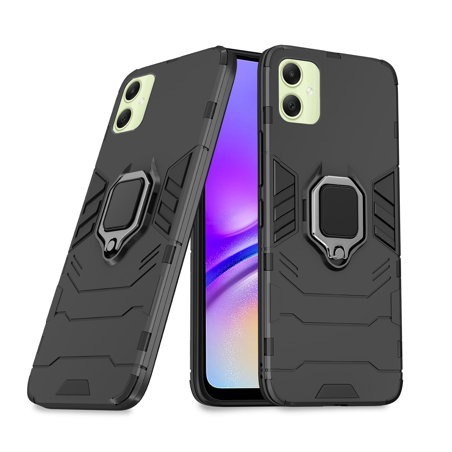 Pikkme Back Cover | D5 Tough Armor Bumper | 360 Protection Case | Ring Holder Stand Case for Samsung Galaxy A05 / M05 / F05 (Black)
