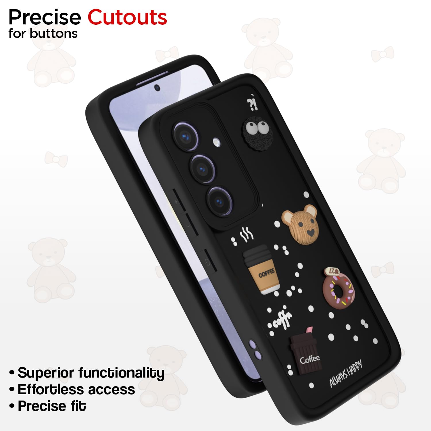 Charming 3D Cartoon Bear Design: Add the fun and playful feel to the Samsung Galaxy S24 5G with a distinct 3D cartoon bear design, making your mobile stand out and show off your own personal style.