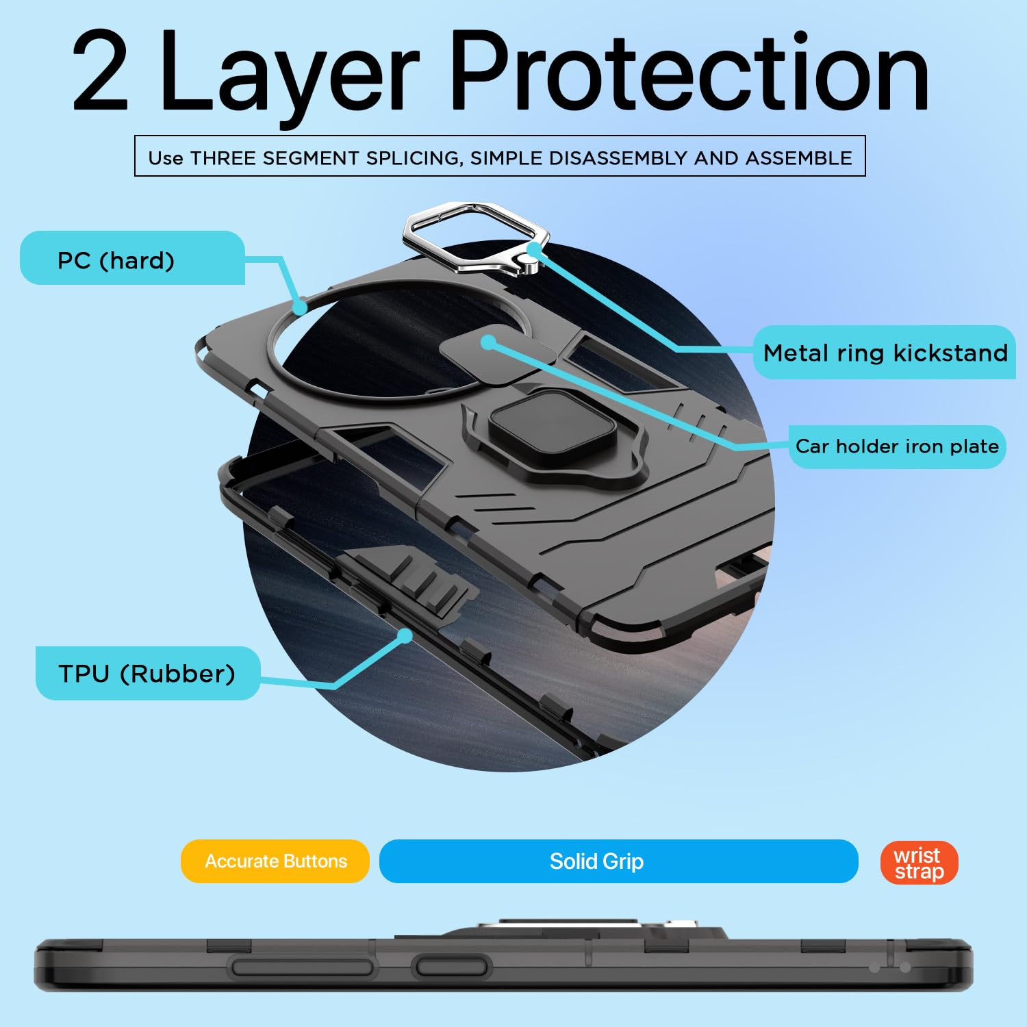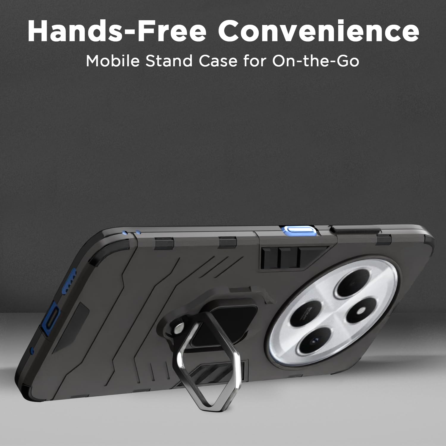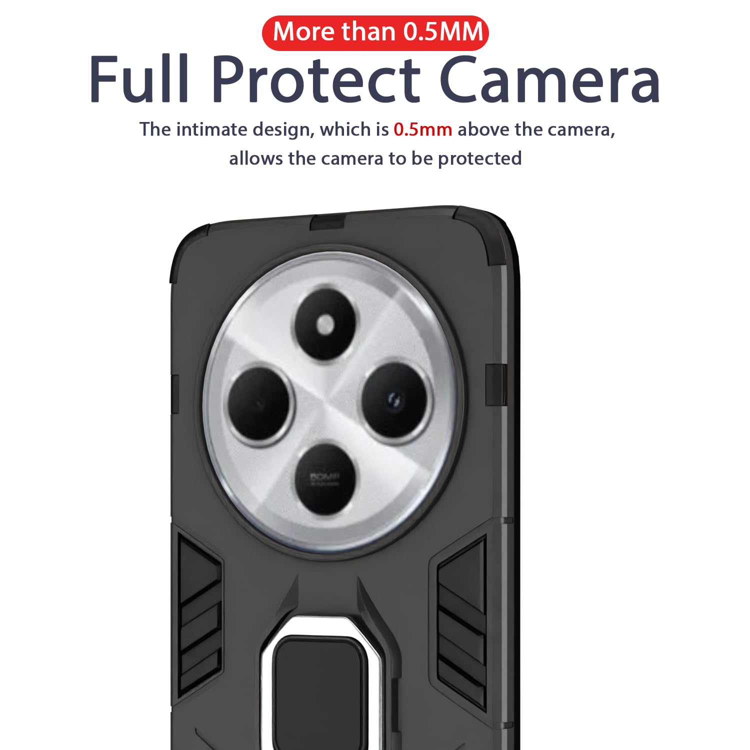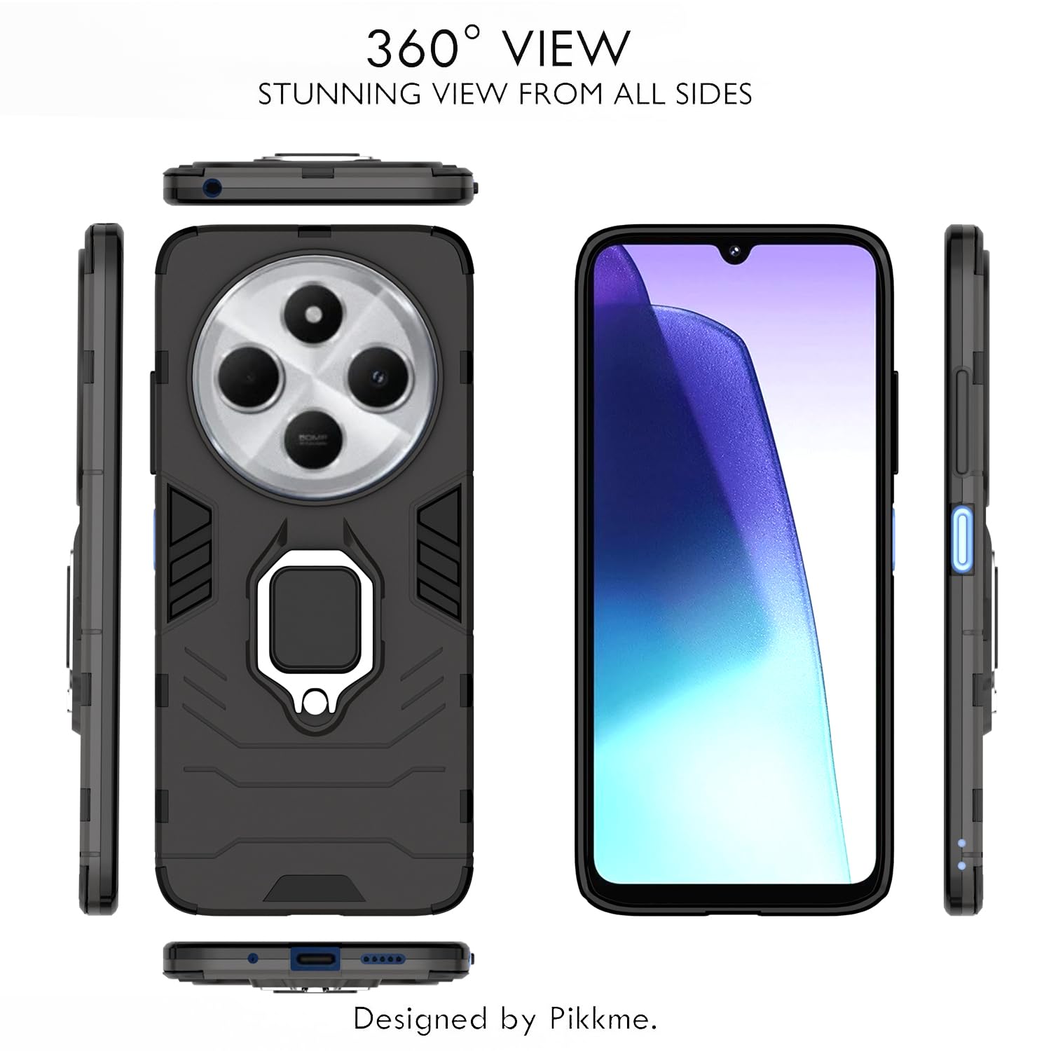 Pikkme D5 Tough Armor Back Cover | 360 Protection Case | Ring Holder Stand Bumper Case for Redmi A4 5G / Redmi 14C 5G / Poco C75 5G (Black)