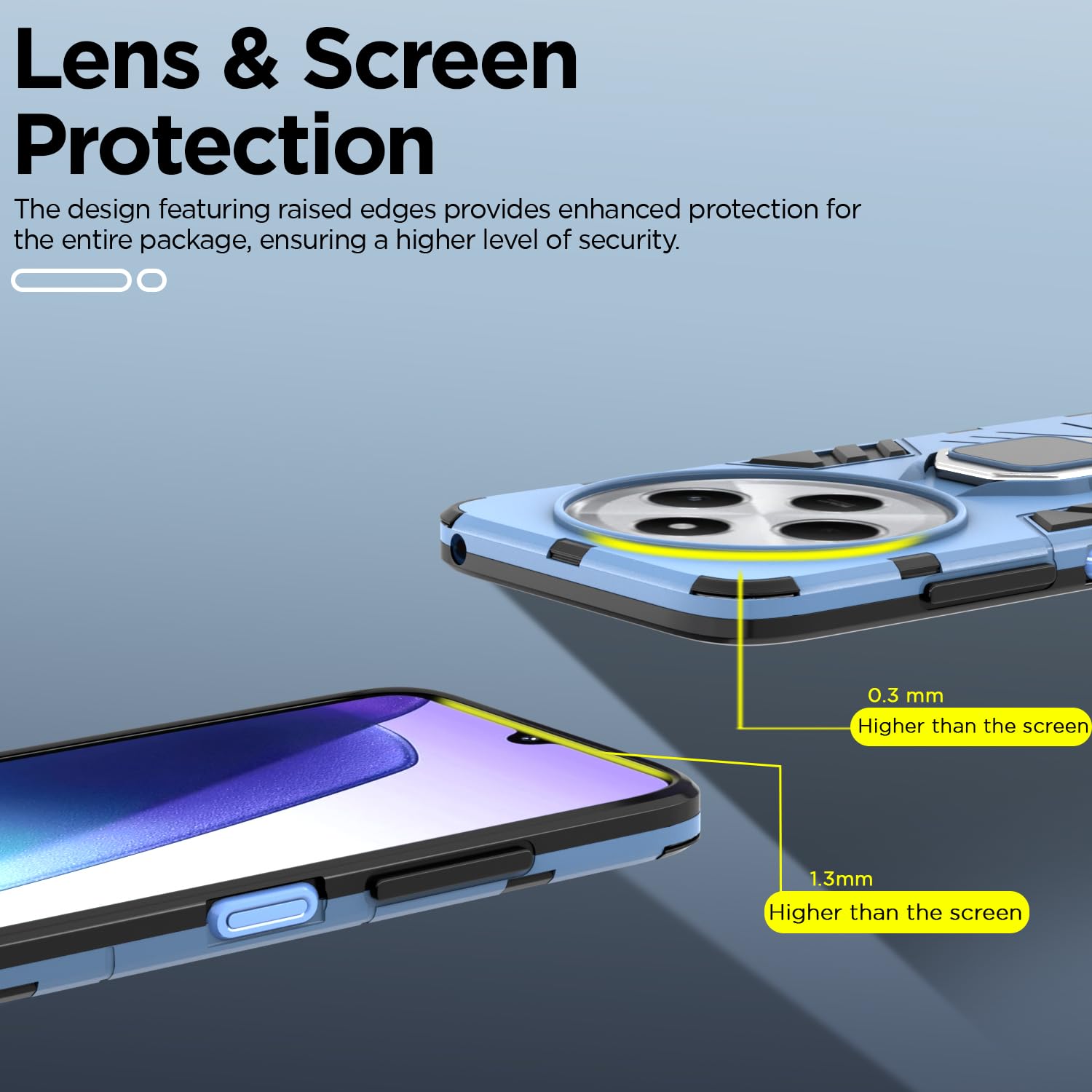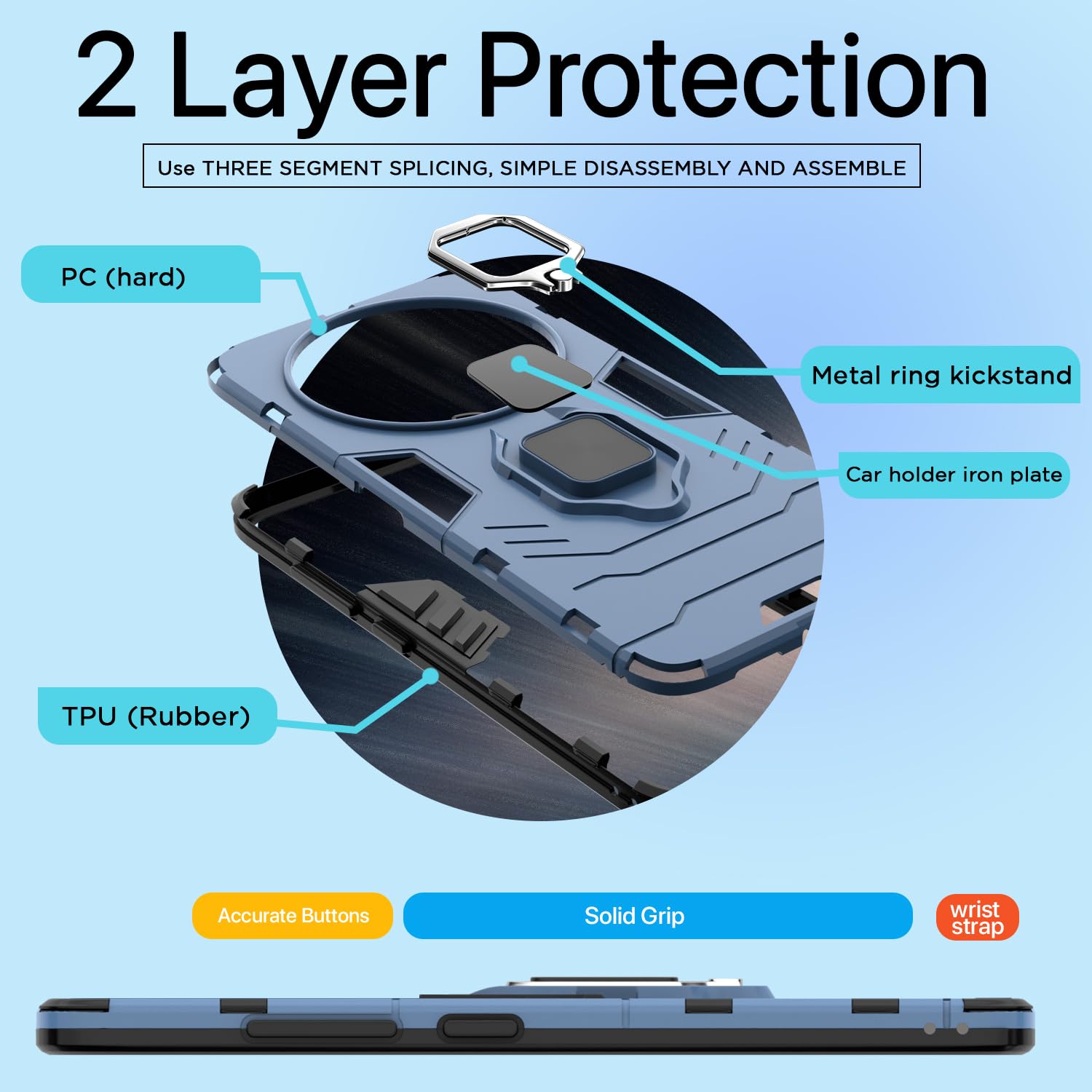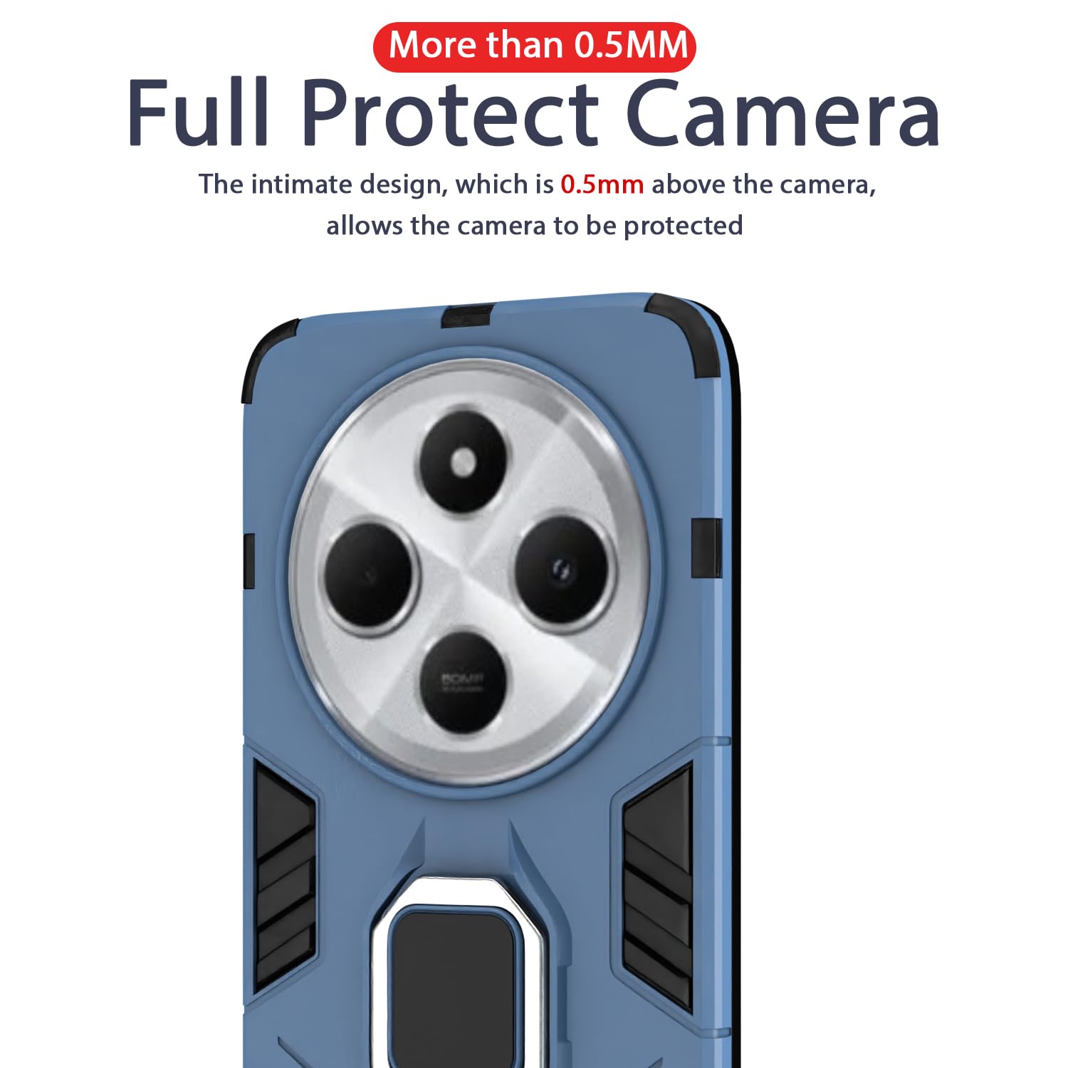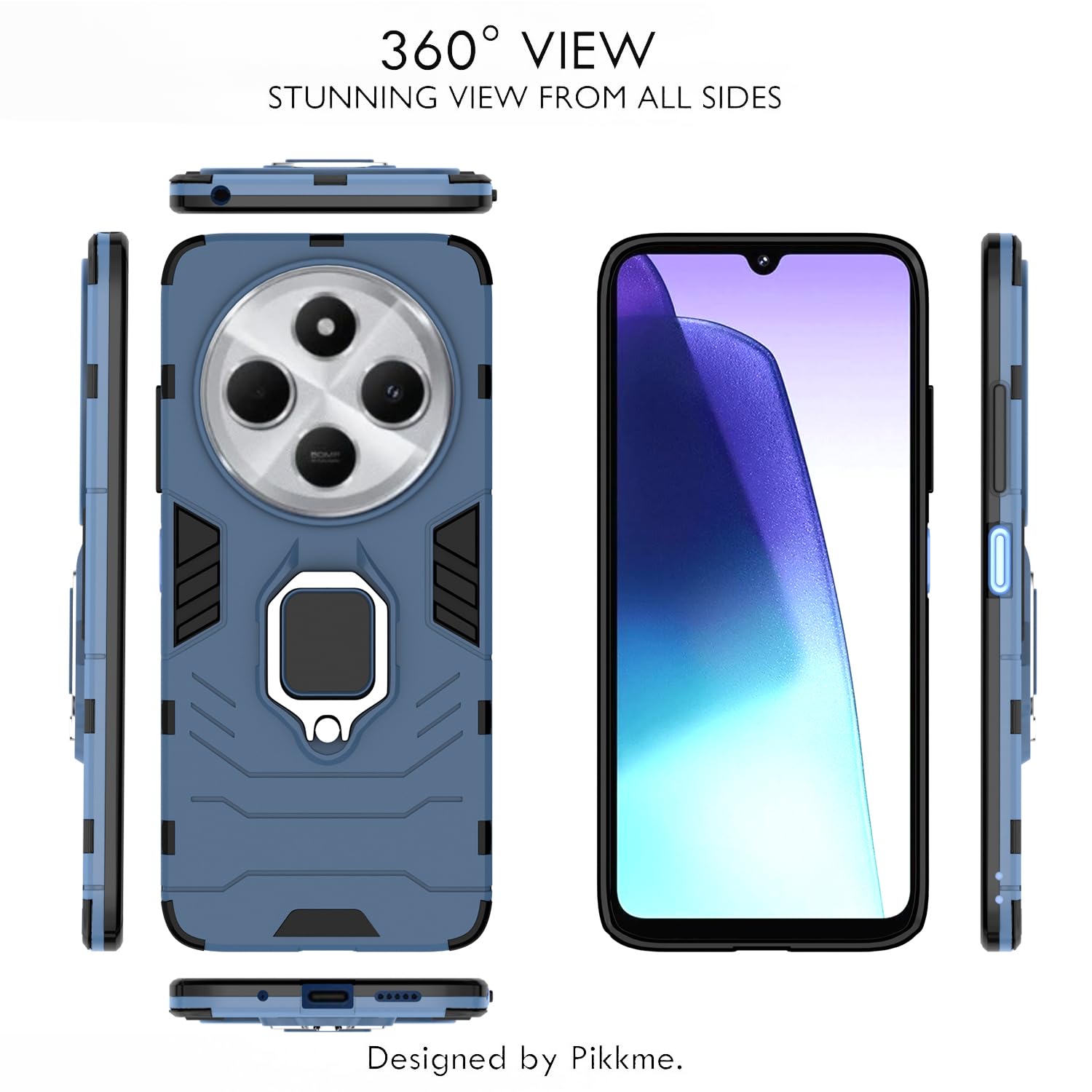 Pikkme D5 Tough Armor Back Cover | 360 Protection Case | Ring Holder Stand Bumper Case for Redmi A4 5G / Redmi 14C 5G / Poco C75 5G (Blue)