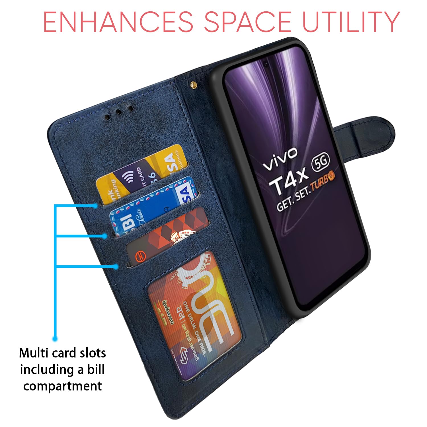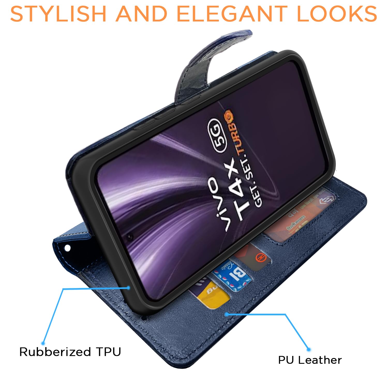 Kick back and relax with a kick-stand engineered into the design of Pikkme leather case. Become a walking mobile theater for quick media sessions on the go Enjoy entertainment while you eat and off your Vivo T4x 5G screen