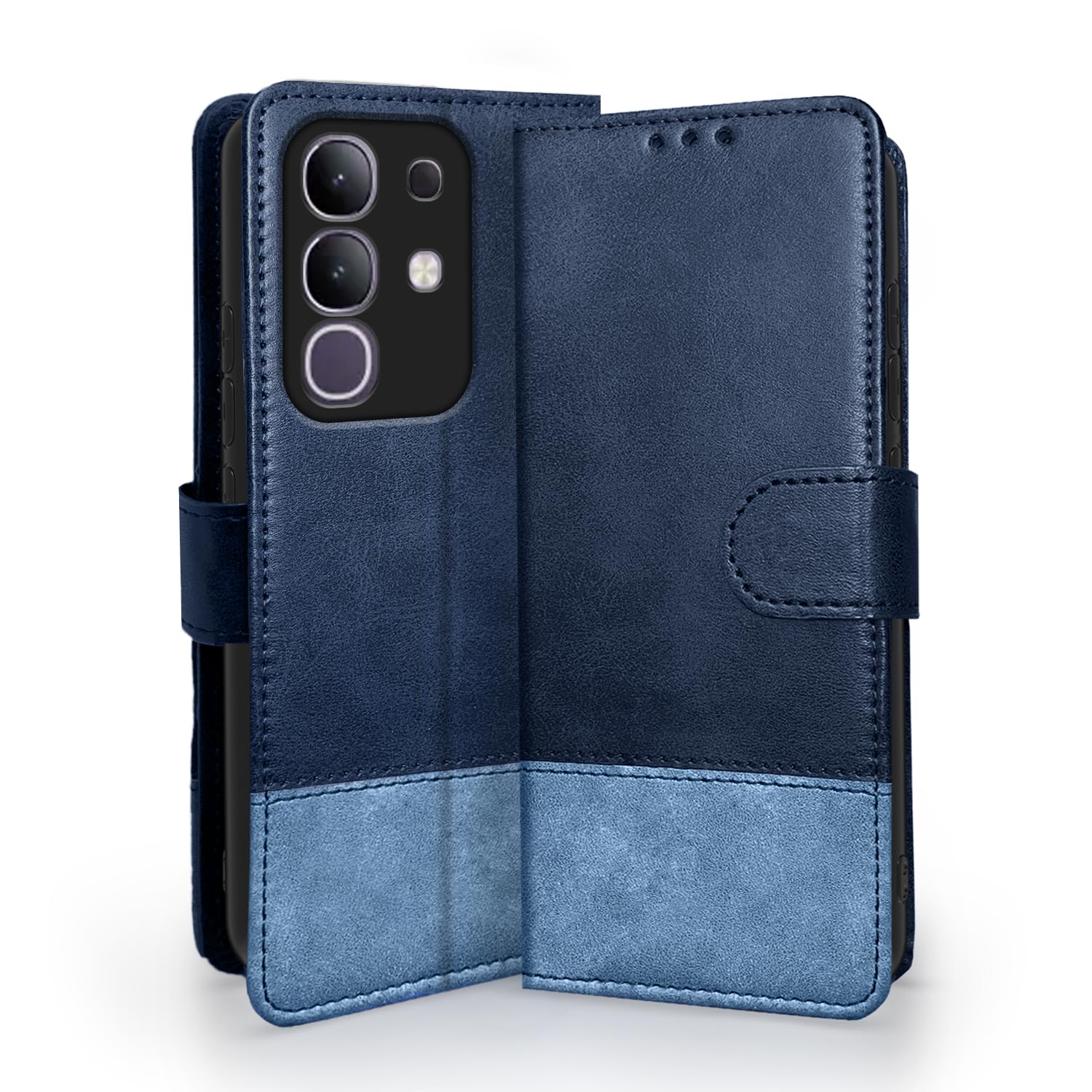 Pikkme Flip Cover for Vivo T4x 5G / iQoo Z10x 5G | Dual-Tone PU Leather Finish | Wallet Style & Stand | Magnetic Flip Case (Navy & Light Blue)