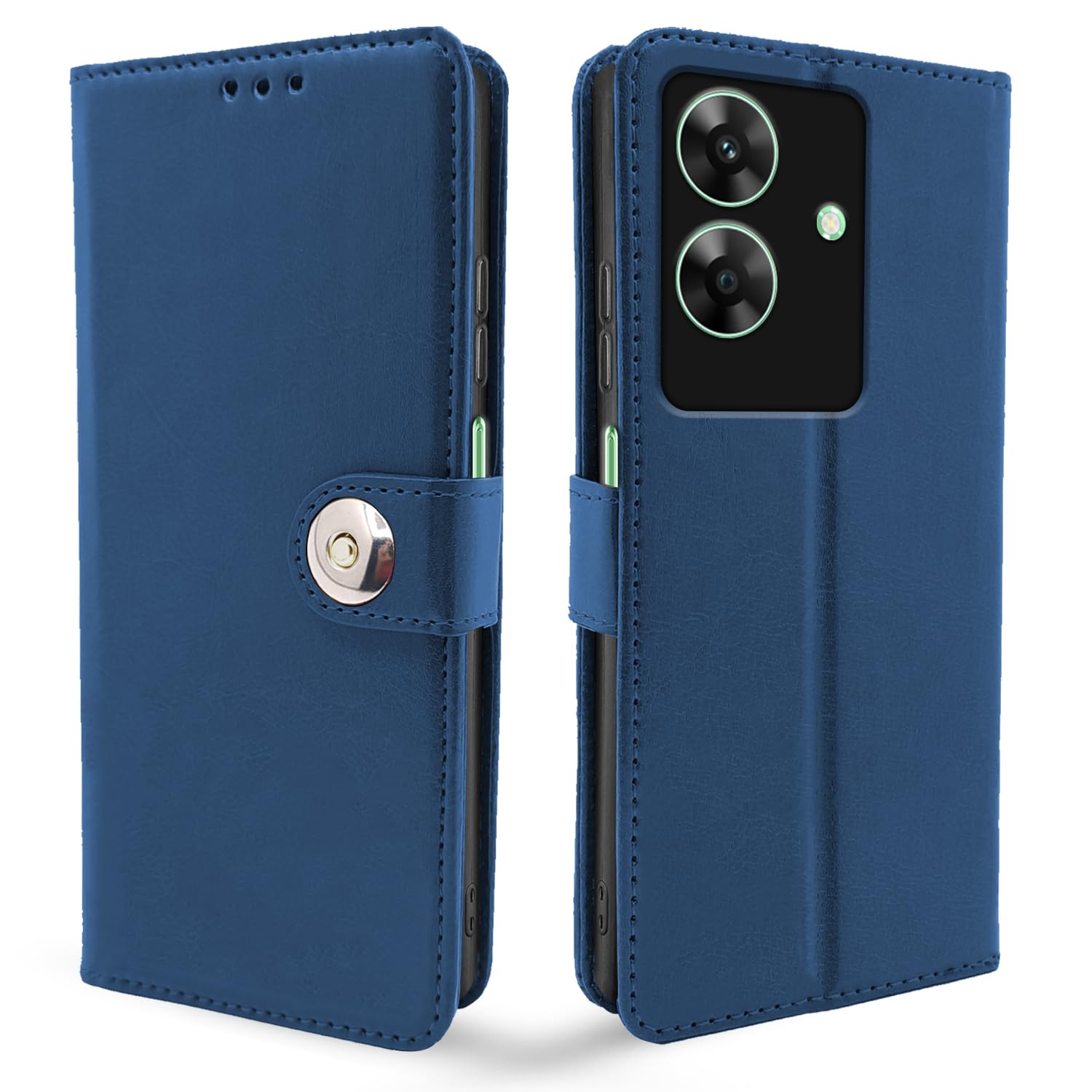 Pikkme Flip Cover Leather Finish | Inside TPU with Card Pockets | Wallet Stand and Shock Proof | Complete Protection Button Flip Case for Realme C61 / Realme Narzo N61 (Blue)