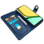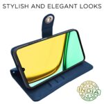 Invest in your brand new Realme C61 device’s protection today through this fit to use executive Blue leather stand wallet case flip cover and save yourself from the heartbreak and agony of watching the scratches and damages on your device multiply periodically. This sleek executive flip cover case is designed to a perfect fit on your mobile and smooth surface further adds to its polished looks. This pouch comes with inner shell back cover that does not break easily and aids in shock absorption during impacts. This wallet case comes with card slots to store receipts, cards or emergency cash. You can now video chat or watch movies hands free in landscape mode with the wallet stand. Perfect and precise cutouts allow easy access to all ports.
