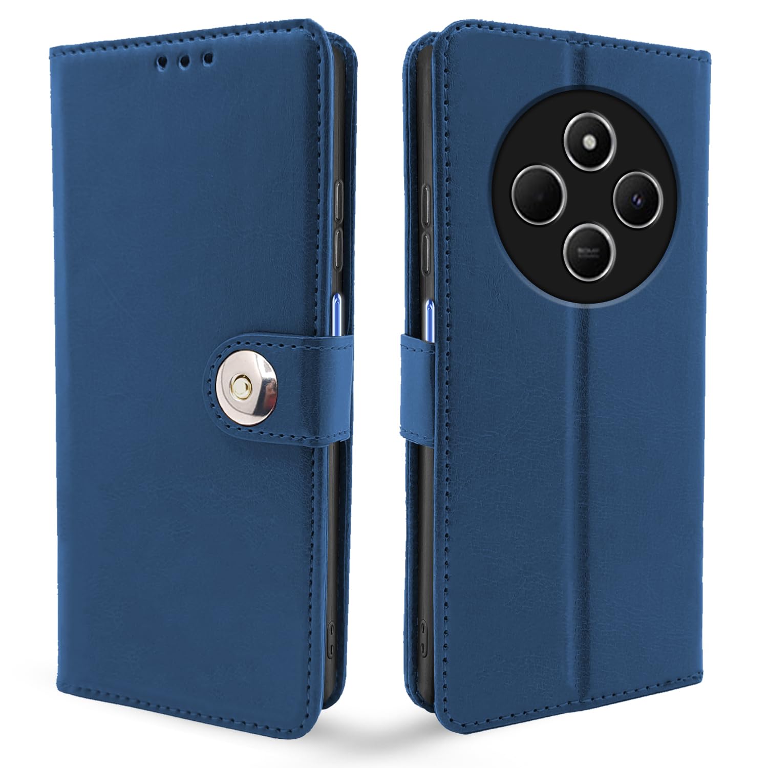 Pikkme Flip Cover Leather Finish | Inside TPU with Card Pockets | Wallet Stand and Shock Proof | Complete Protection Button Flip Case for Redmi A4 5G / Redmi 14C 5G / Poco C75 5G (Blue)